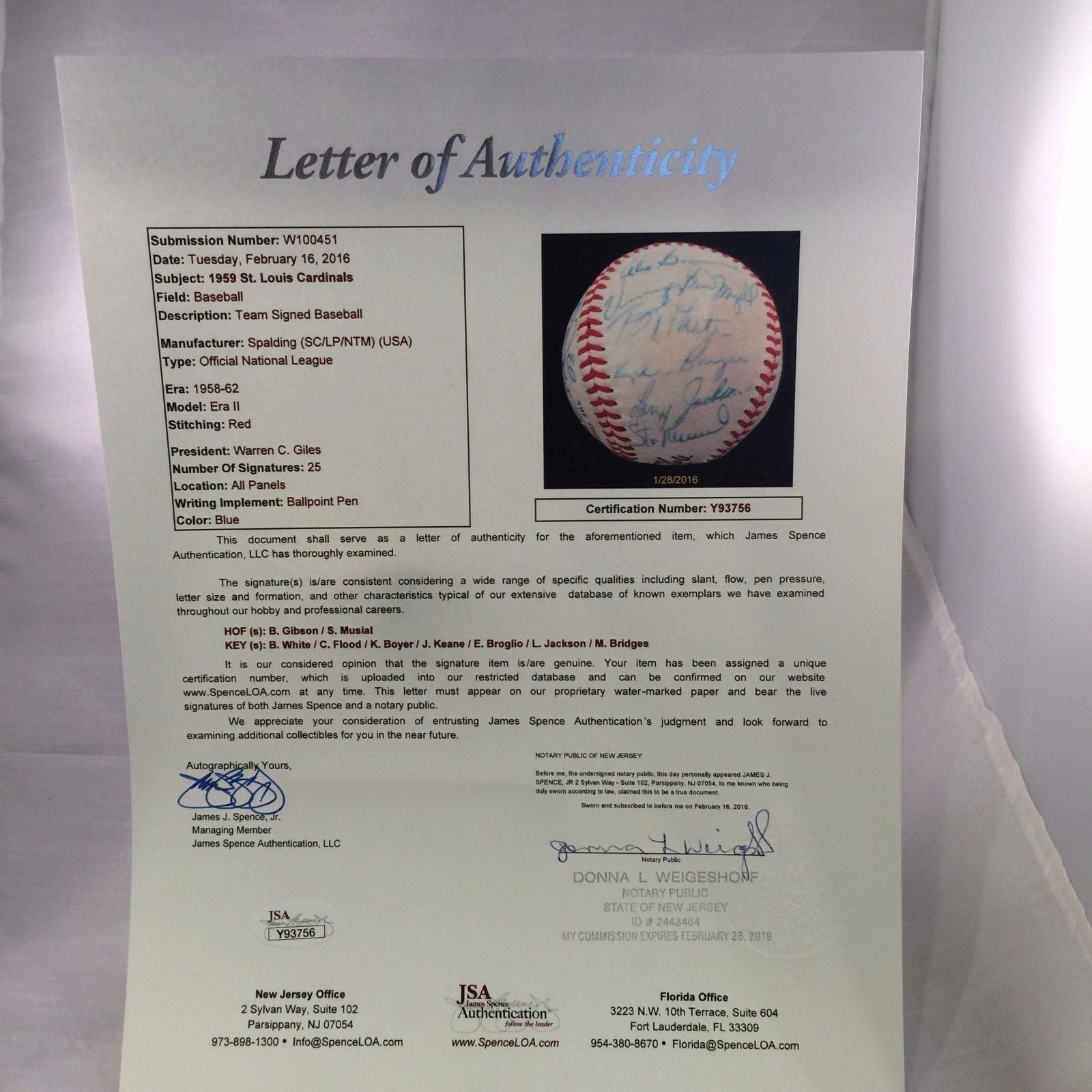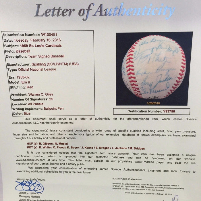 Bob Gibson Rookie Season 1959 St. Louis Cardinals Team Signed Baseball JSA COA