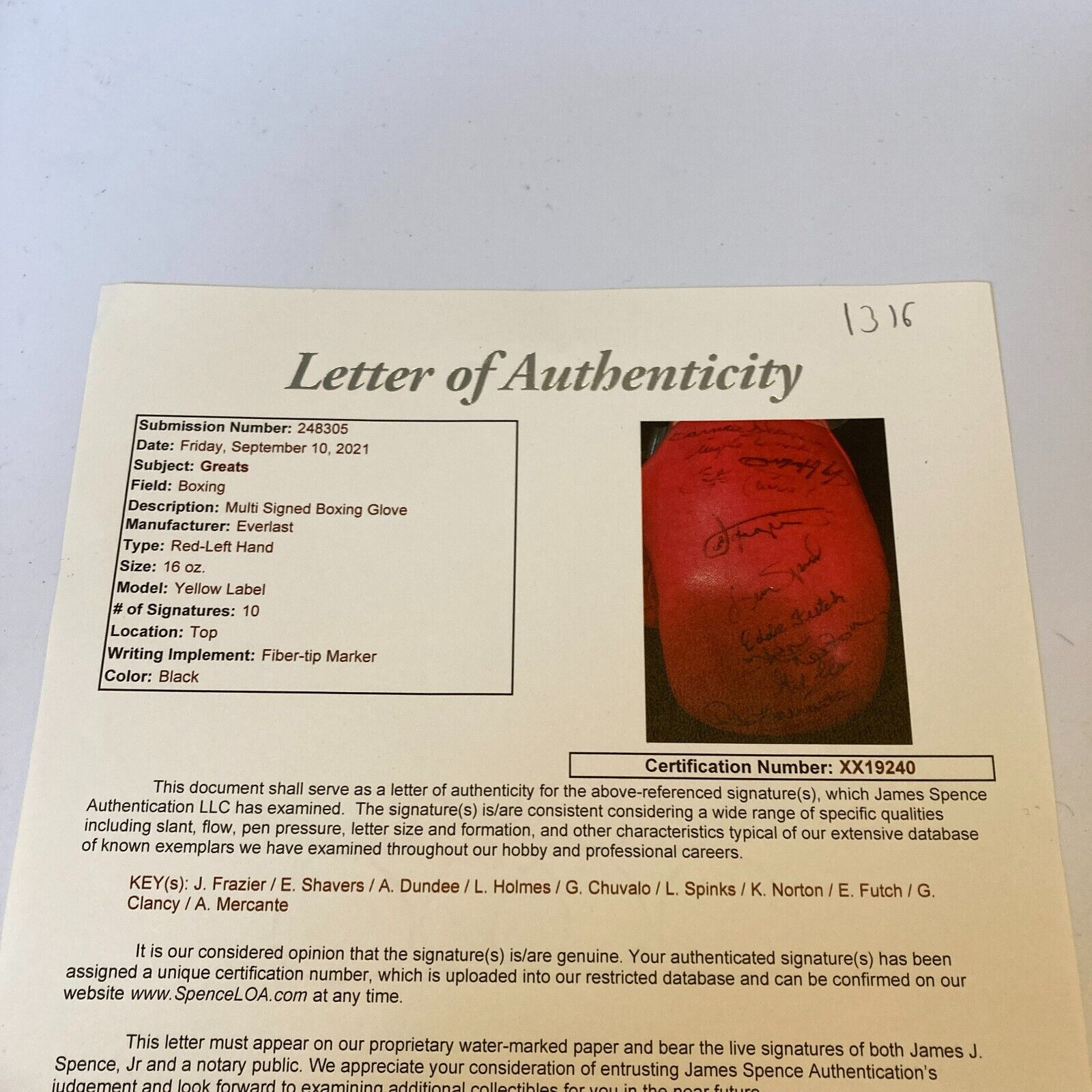 Boxing Legends Signed Glove Joe Frazier Shavers Holmes Norton Spinks JSA COA