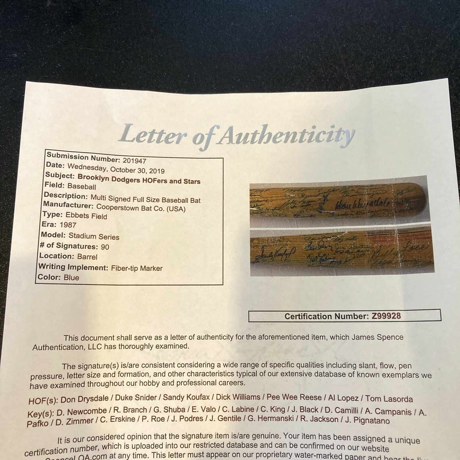 Brooklyn & Los Angeles Dodgers Multi Signed Bat 90+ Sigs! Sandy Koufax JSA COA