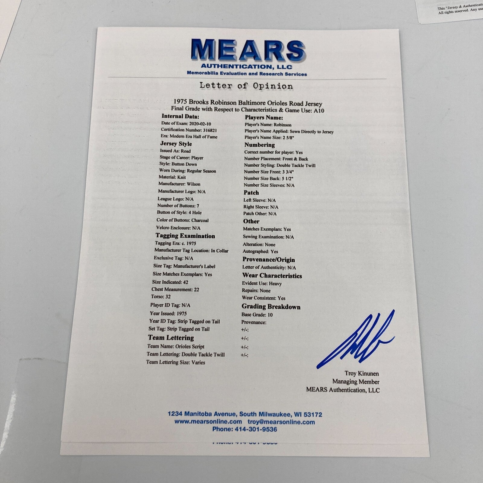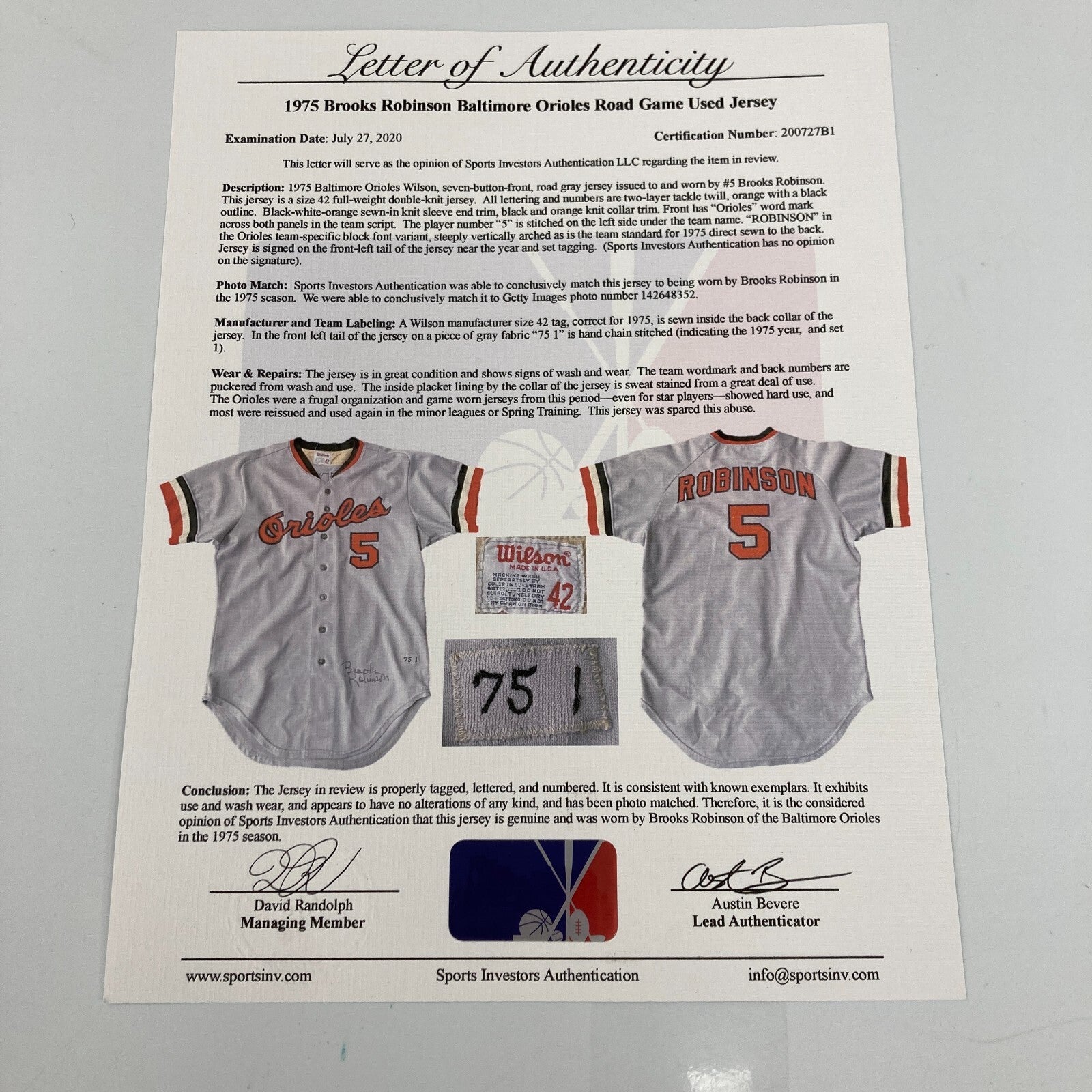 Brooks Robinson Photo Matched Game Used Signed 1975 Baltimore Orioles Jersey