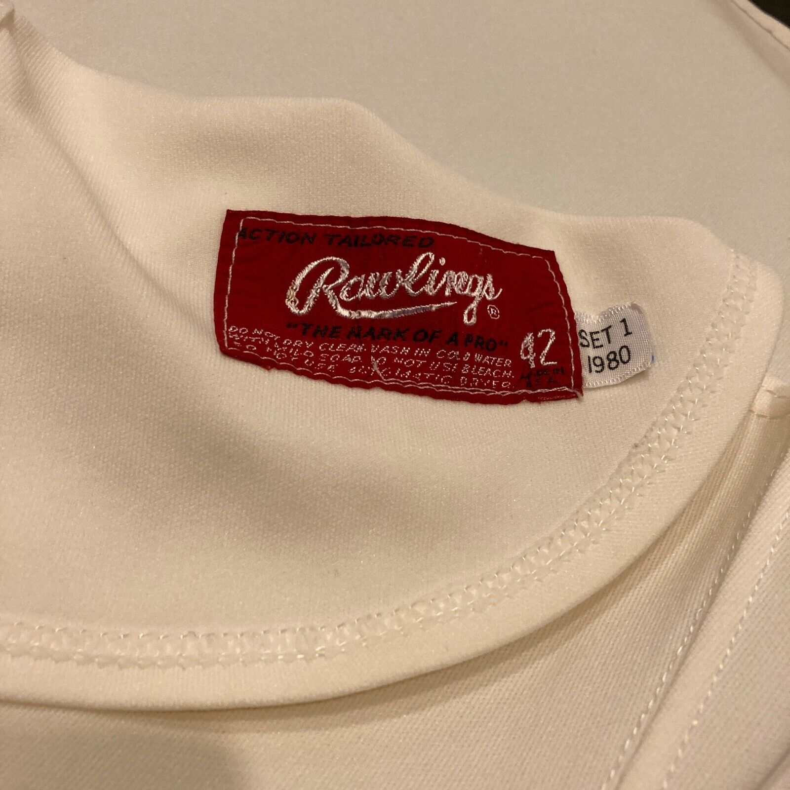 Wearing this jersey, Cal made his Major League debut on August 10, 1981 against Kansas City. Earl Weaver put the rookie in as a pinch runner in the 12th inning and he promptly scored the winning run on a John Lowenstein single. Weaver used him as a pinch runner again two days later in the first game of a doubleheader. In the second game Cal went hitless in two at bats but recorded his first big league hit on August 16 against the White Sox. In his short stint with the O’s in 1981, Cal demonstrated through his fielding, bat and drive that he was indeed Big League material. He’d make the Orioles roster out of spring training the next year and starting May 30, 1982 would play in every single Orioles game for the next 16 years.