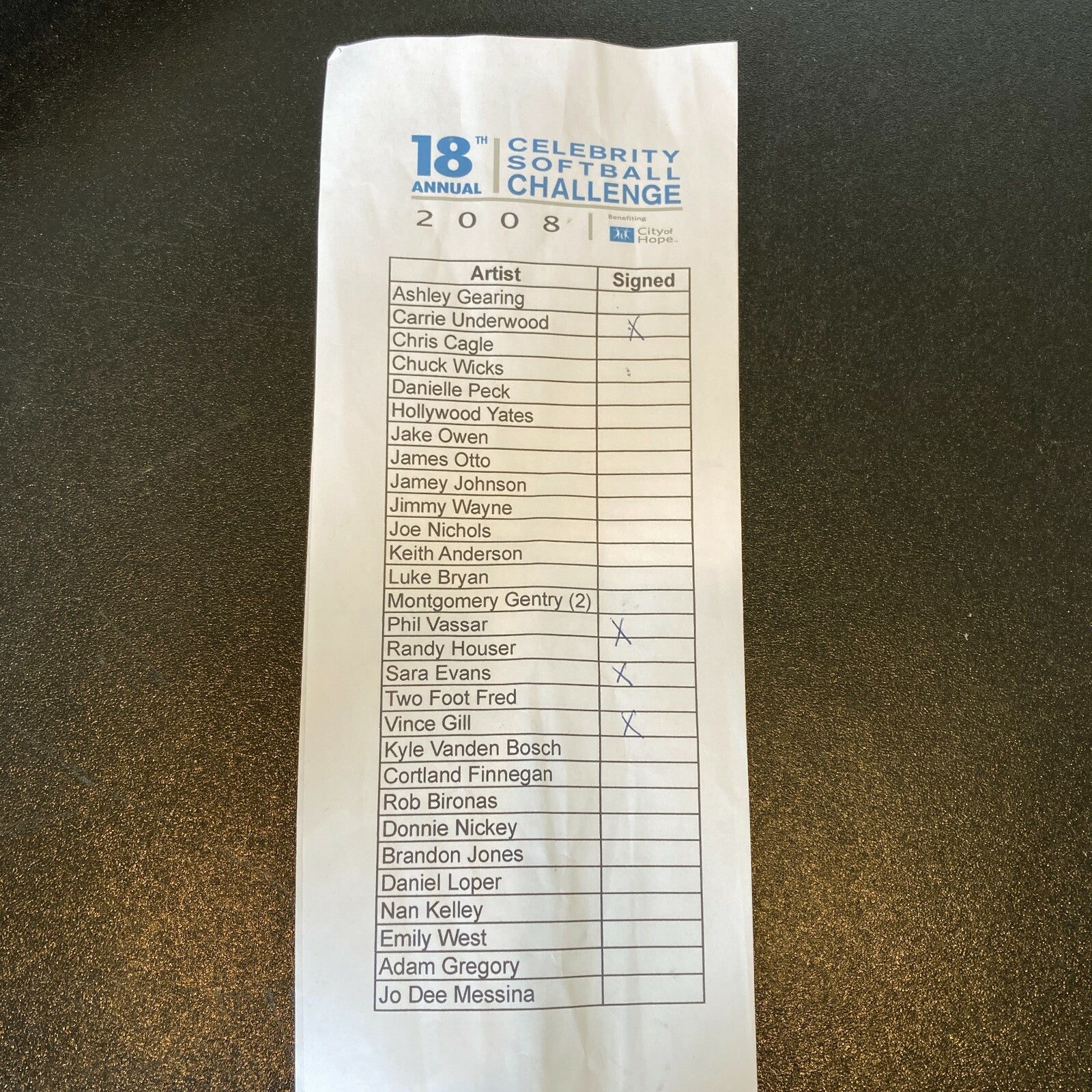 Carrie Underwood (twice signed), Vince Gil, Sarah Evans and Phil Vassar Signed 2008 All Star Game Celebrity Softball Challenge Bat JSA