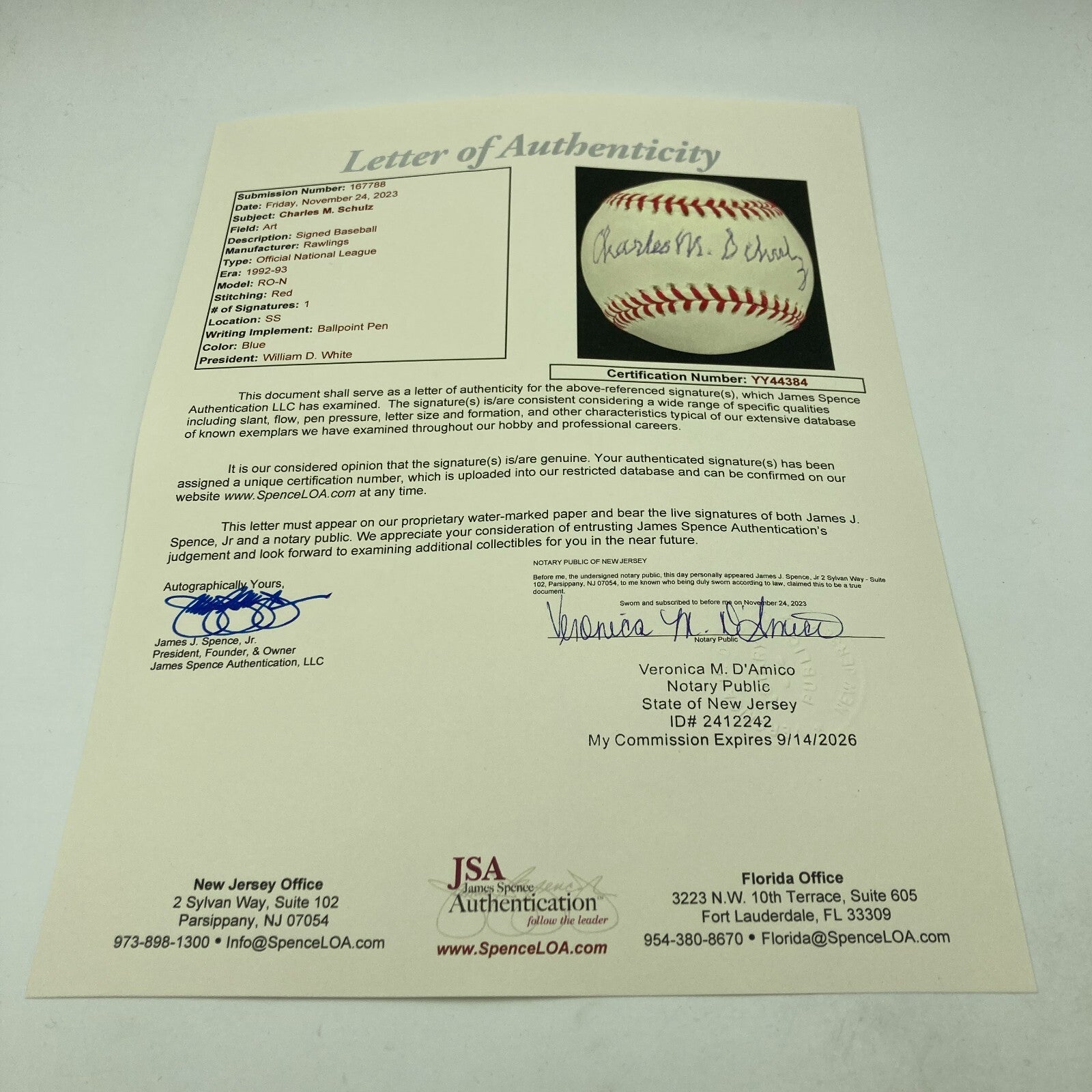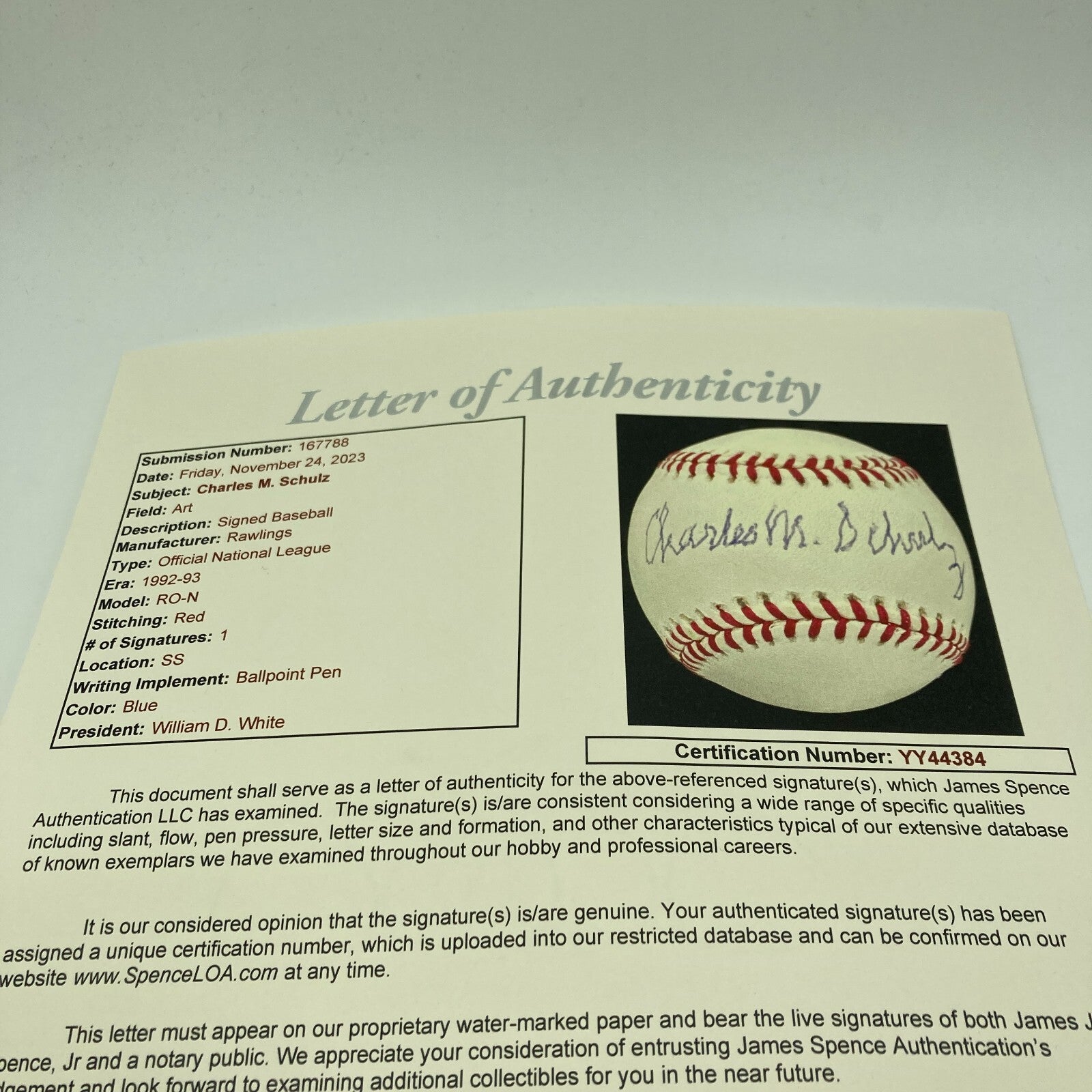 Click or scroll to zoom Tap or pinch to zoom Click or scroll to zoom Tap or pinch to zoom Click or scroll to zoom Tap or pinch to zoom Click or scroll to zoom Tap or pinch to zoom Click or scroll to zoom Tap or pinch to zoom Click or scroll to zoom Tap or pinch to zoom Charles M. Schulz Peanuts Single Signed National League Baseball With JSA COA $9,995.00 1 2 3 4 5 6 7 8 9 10+ Quantity Quantity Add to cart This item is a recurring or deferred purchase. By continuing, I agree to the cancellation policy and authorize you to charge my payment method at the prices, frequency and dates listed on this page until my order is fulfilled or I cancel, if permitted. Extraordinary Charles M. Schulz Peanuts Single Signed National League Baseball With JSA COA. First one I've ever seen in my life. Ball and signature are beautiful. A#33