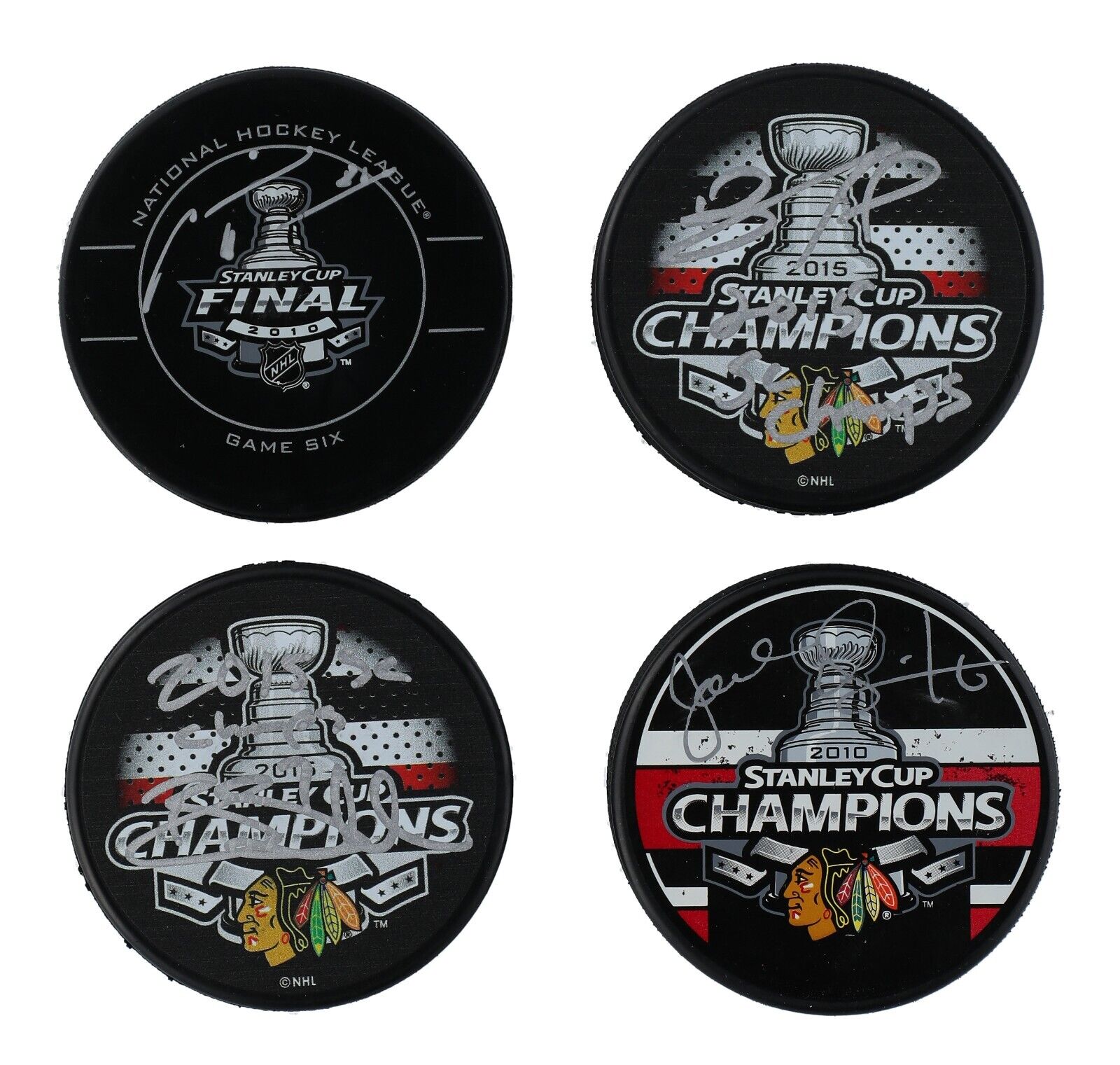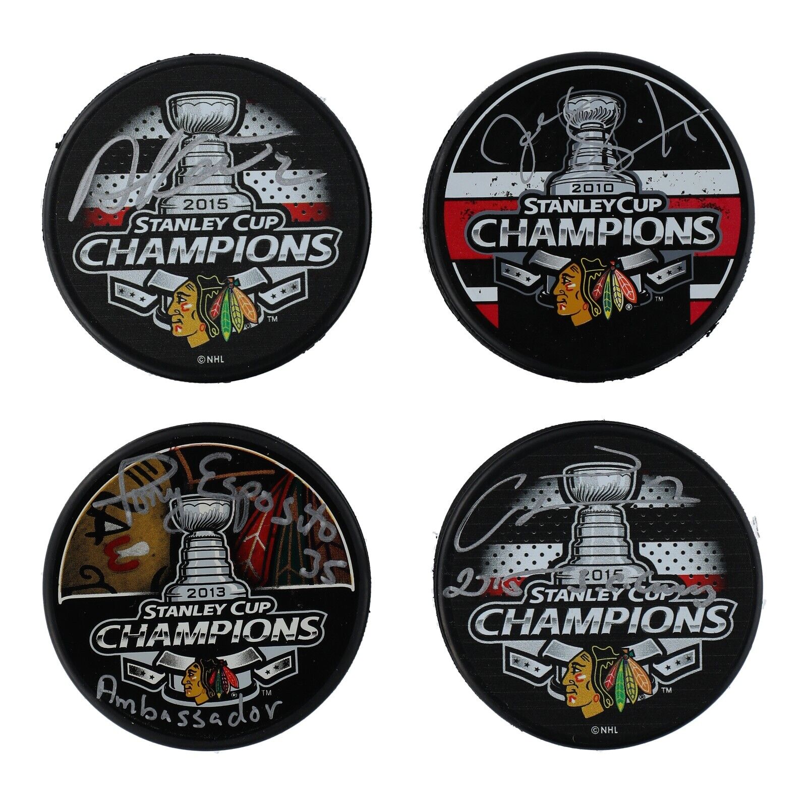 Chicago Blackhawks Signed, Inscribed Stanley Cup Puck Collection (14) - Featuring Tony Esposito, Jonathan Toews, Duncan Keith. Most are certified by Fanatics.