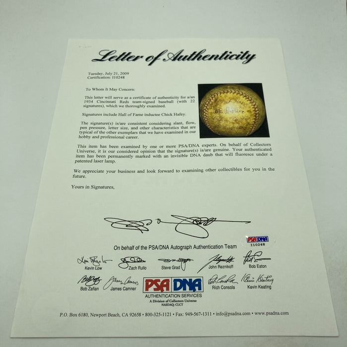 Chick Hafey 1934 Cincinnati Reds Team Signed National League Baseball PSA DNA