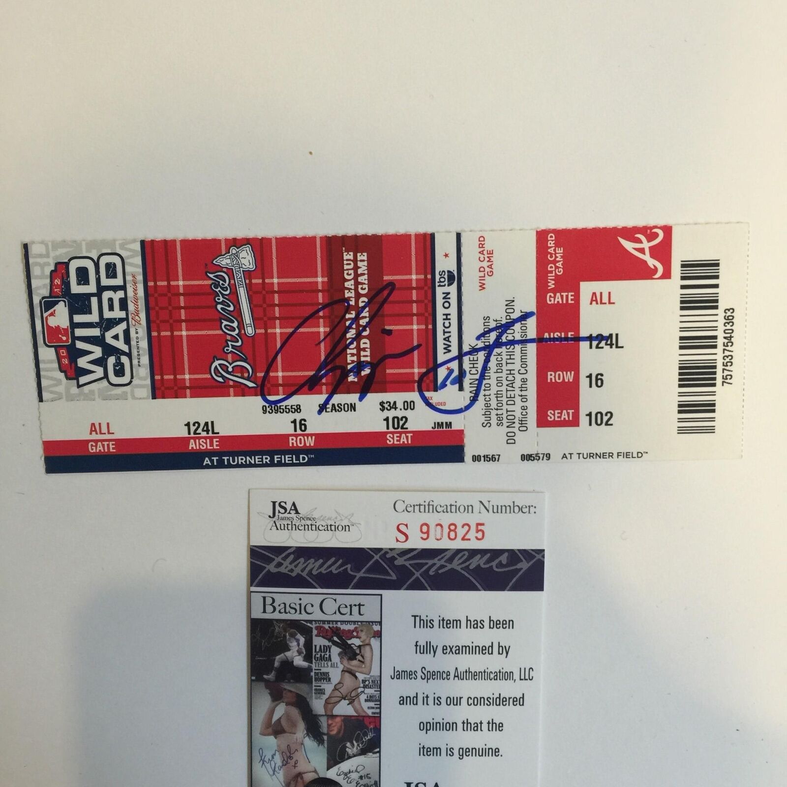 Chipper Jones signed 2012 Wild Card ticket. This was his final career game, ending a now first ballot Hall of Fame career. Ticket is unused and in mint condition.
