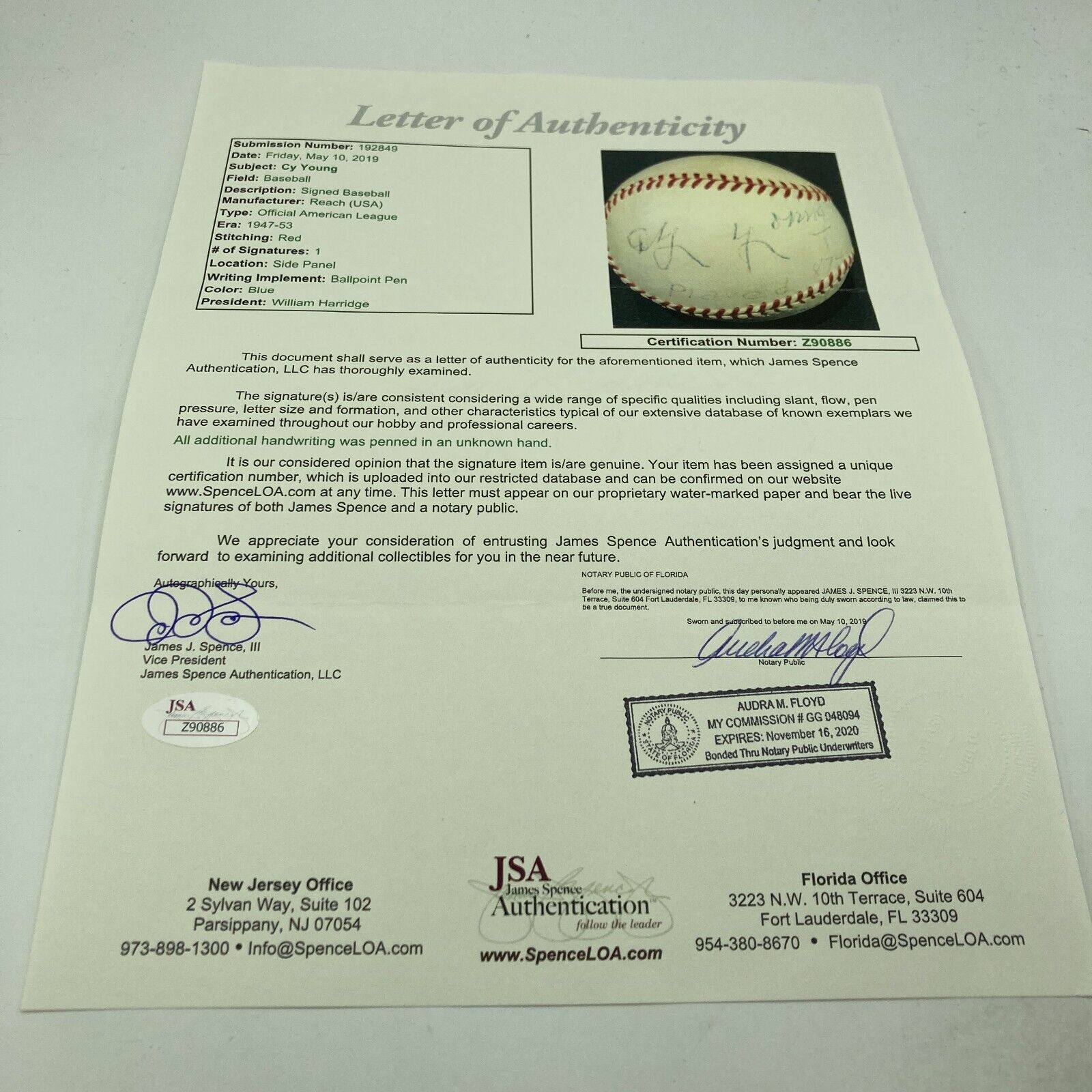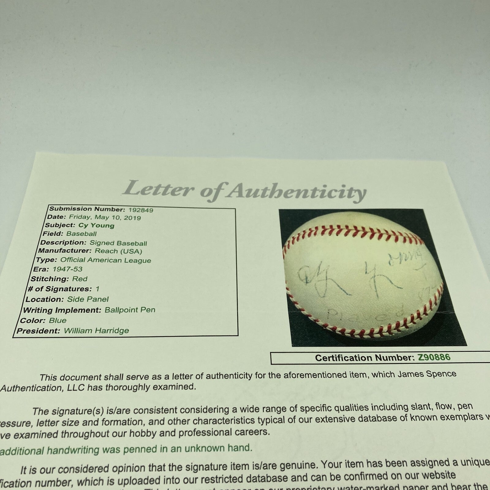 Cy Young Single Signed American League Baseball PSA DNA & JSA COA