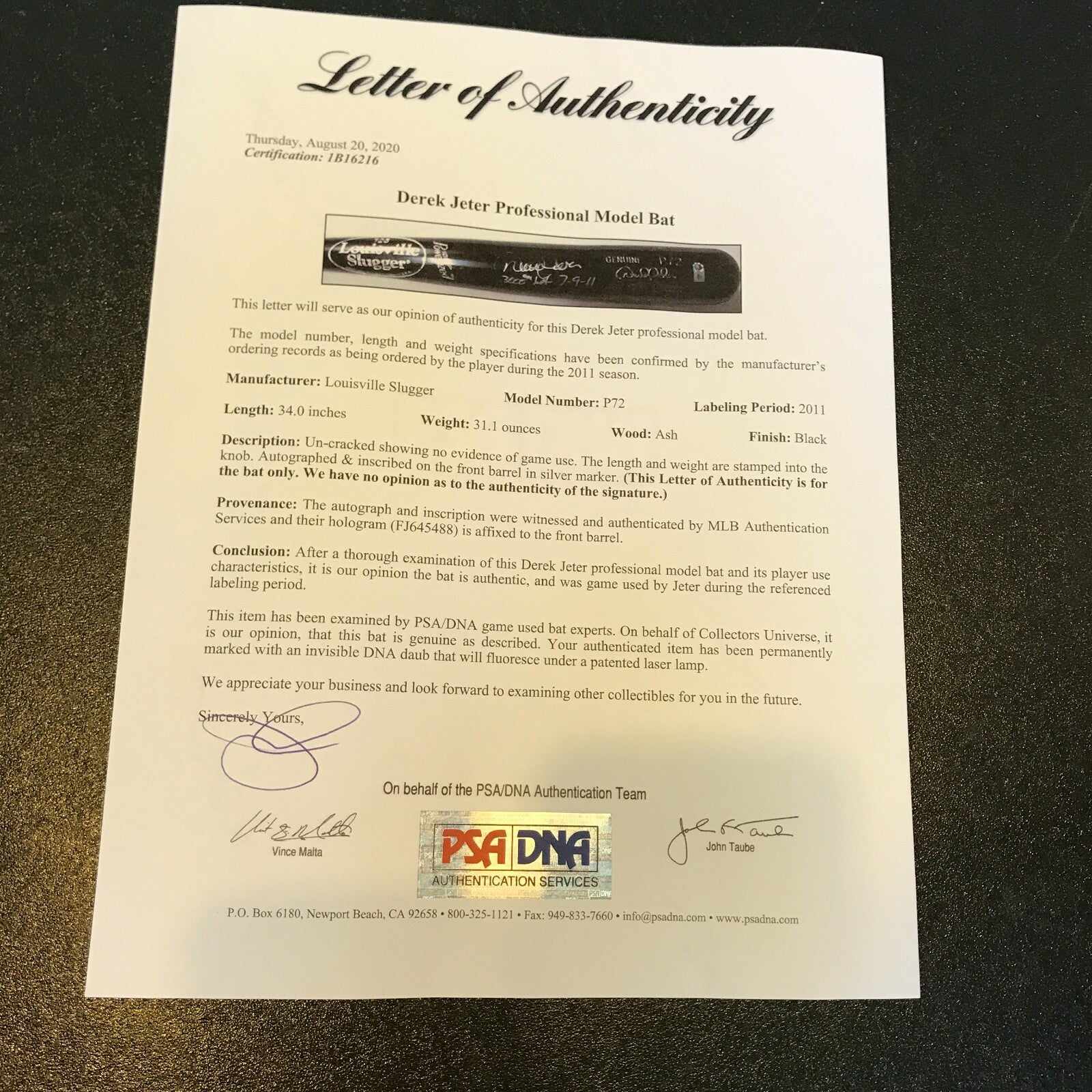Derek Jeter 3,000th Hit 7-9-11 Signed Inscribed Game Issued Baseball Bat PSA DNA