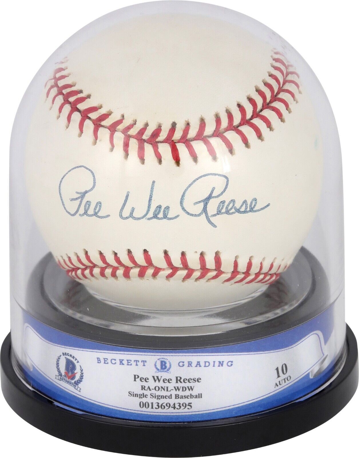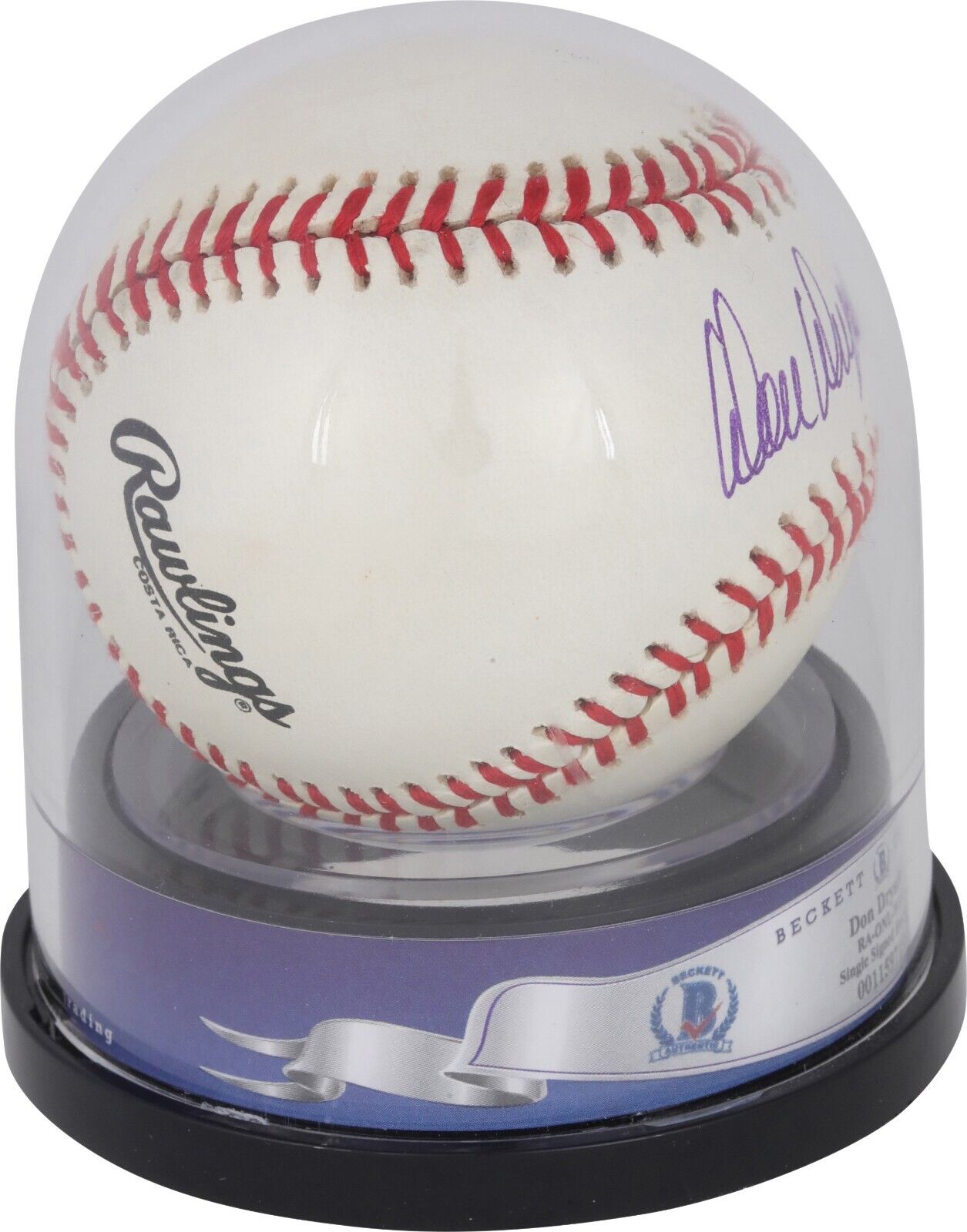 Don Drysdale single-signed baseball. This Official American League (White) baseball has been signed by Dodgers Hall of Famer Don Drysdale. The baseball is in near mint condition and the signature has been graded a perfect 10 by Beckett. Drysdale played his entire career with the Dodgers and was inducted into the National Baseball Hall of Fame in 1984.