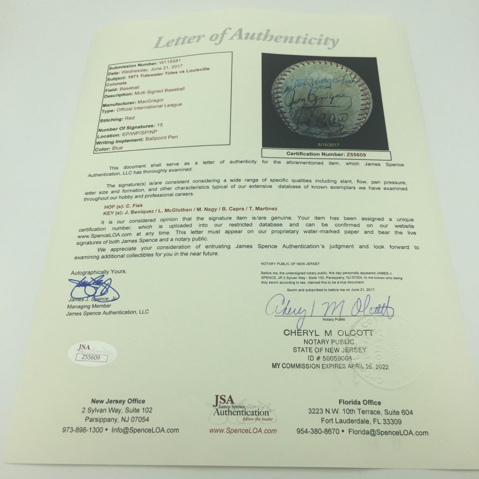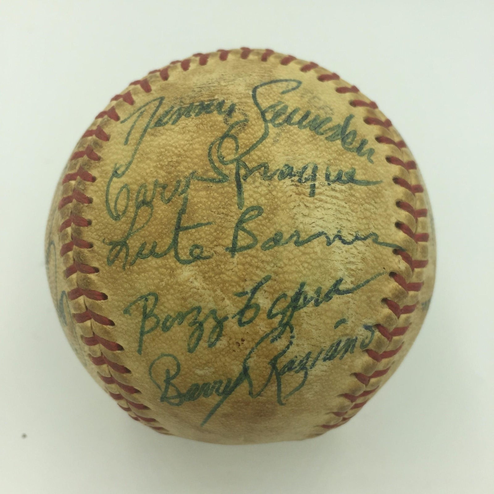 1971 Louisville Colonels Boston Red Sox Minor League Team signed game used Official Minor League Baseball with earliest known Carlton Fisk signature. Fisk signed his name "Carlton Pudge Fisk".15 signatures on the ball. Comes with original program from the Louisville Colonels game.
