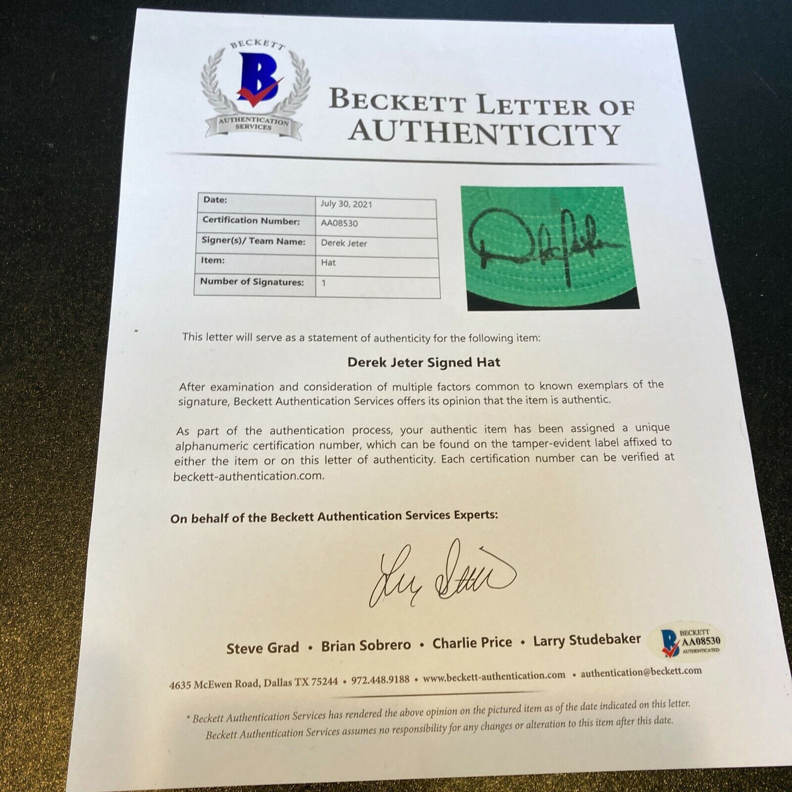Earliest Known Derek Jeter Pre Rookie 1992 Signed New York Yankees Hat With Beckett Full Letter COA. Jeter signed this right when he came up in the Minor Leagues. Very rare early career version of his signature.