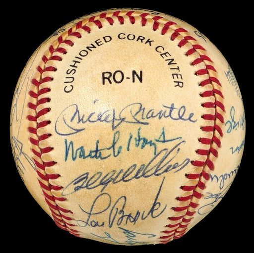 Extraordinary All Century Team Signed Baseball With Joe Dimaggio. 16 signatures from the historic 1999 "All Century Team" including: Joe Dimaggio, Stan Musial, Cal Ripken, Nolan Ryan, Mike Schmidt, Brooks Robinson, Yogi Berra, Johnny Bench, Ernie Banks, Warren Spahn, Sandy Koufax, Hank Aaron, Willie Mays, Bob Gibson, Roger Clemens and Pete Rose. Full letter COA from JSA.