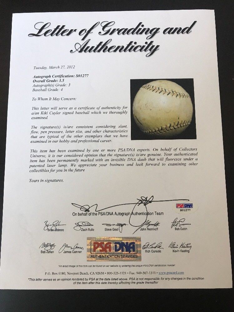 Extraordinary Hazen Kiki Cuyler Single Signed Autographed Baseball PSA DNA COA