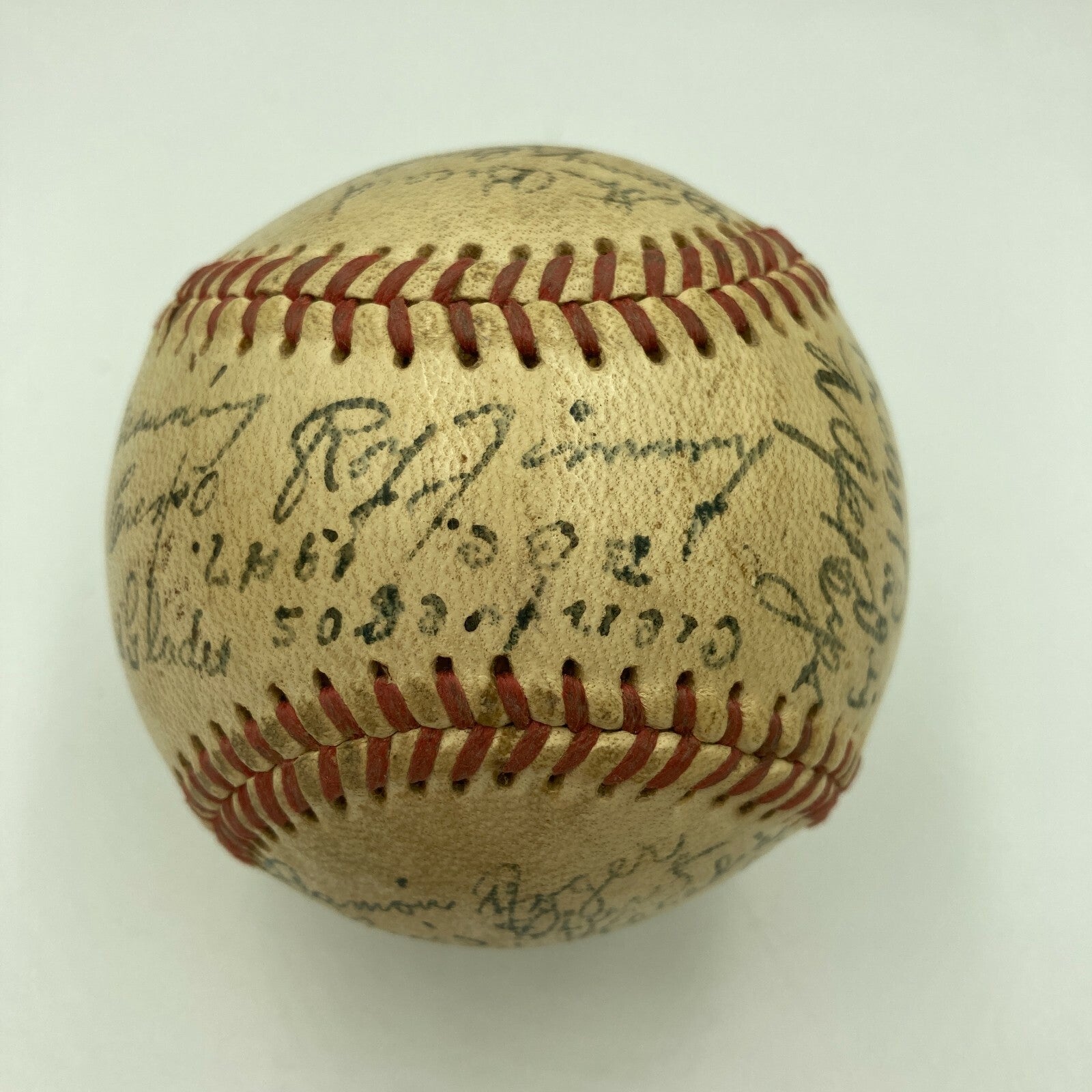 Stunning 1940's Cuban Legends multi signed baseball with the impossible to find signature of the legendary Cuban Martin Dihigo, arguably the best all-around ballplayer ever, black or white. Though Dihigo was 40 at the time, his legend preceded him. Famously, he could play all 9 positions, though he most excelled as a pitcher and centerfielder all over the Western Hemisphere since 1923, periodically in the Negro Leagues, and his epic mano-a-mano battles against Satchel Paige still echo in the Caribbean's breezes. Elected to the U.S., Mexican, Venezuelan and Cuban HOFs, he was revered in his native land, and particularly in his home town of Cienfuegos, where he died in 1971. Known as "El Immortal," a statue of him stands today in front of Havana's Estadio Latinoamericano, where Cienfuegos won the Cuban League title the year prior in '46. This is one of only three Dihigo signed baseballs known to exist. Comes with full letter JSA COA.