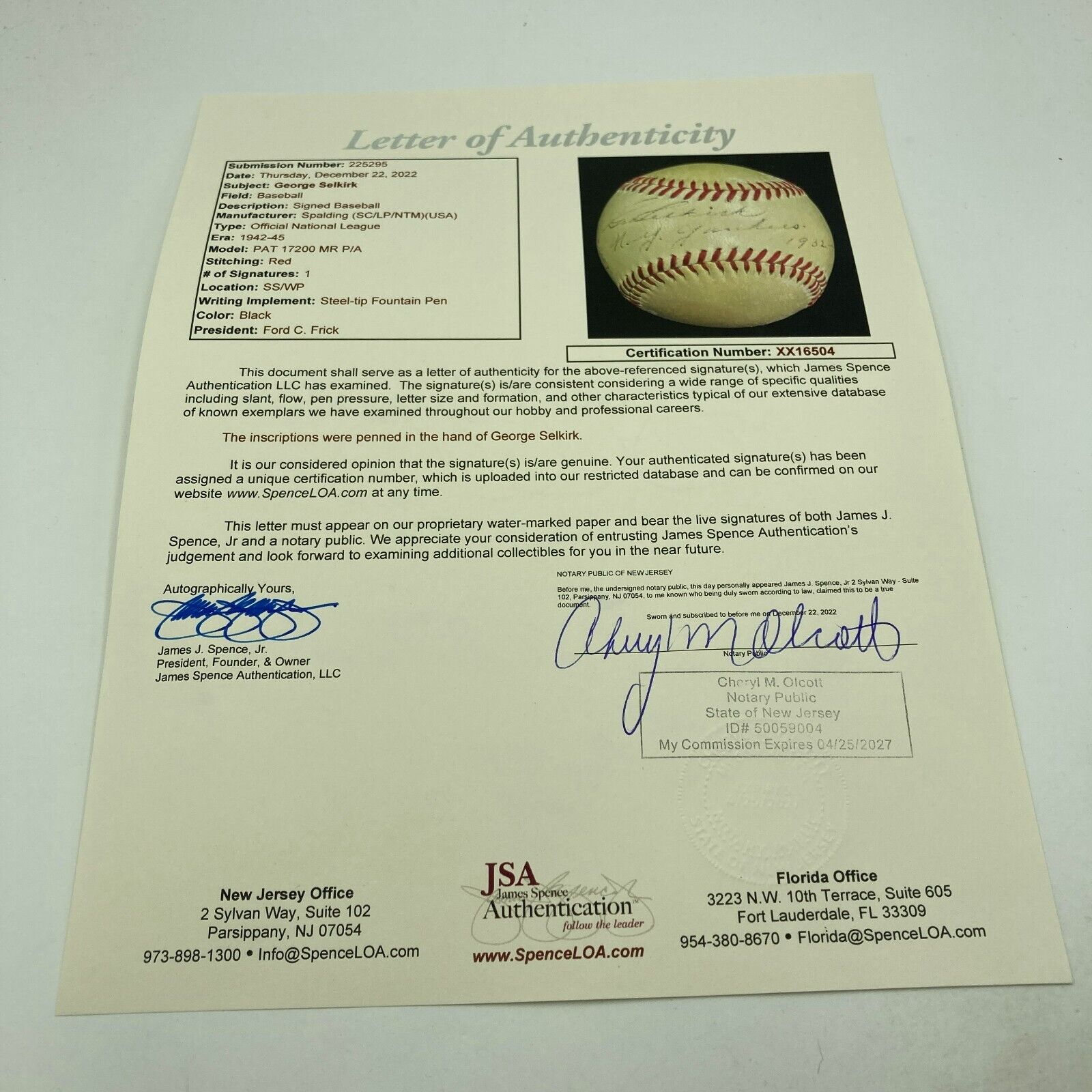 Extremely Rare George Selkirk "NY Yankees 1932-42" Single Signed Official National League Ford Frick Baseball.