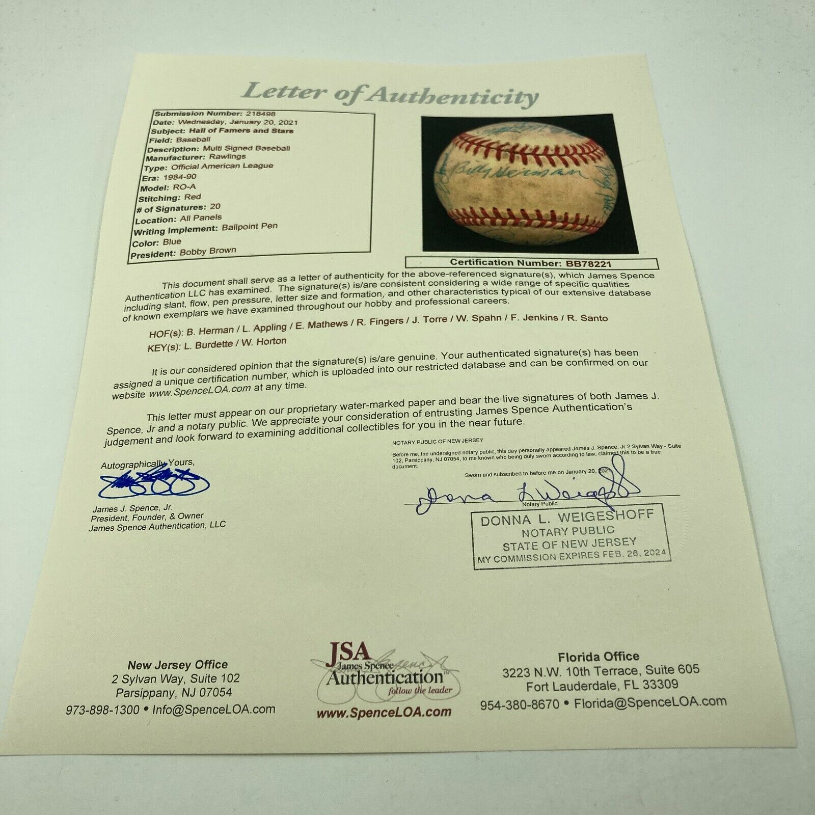 Full letter JSA COA.