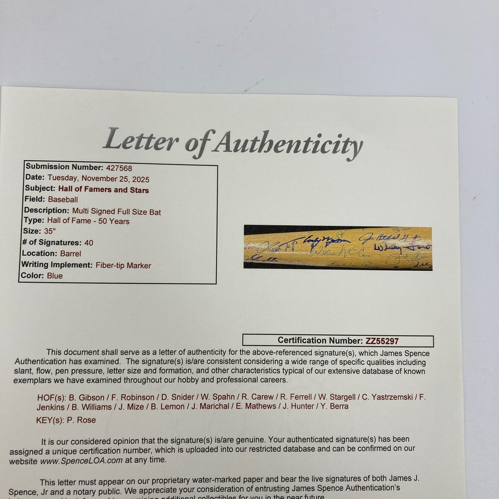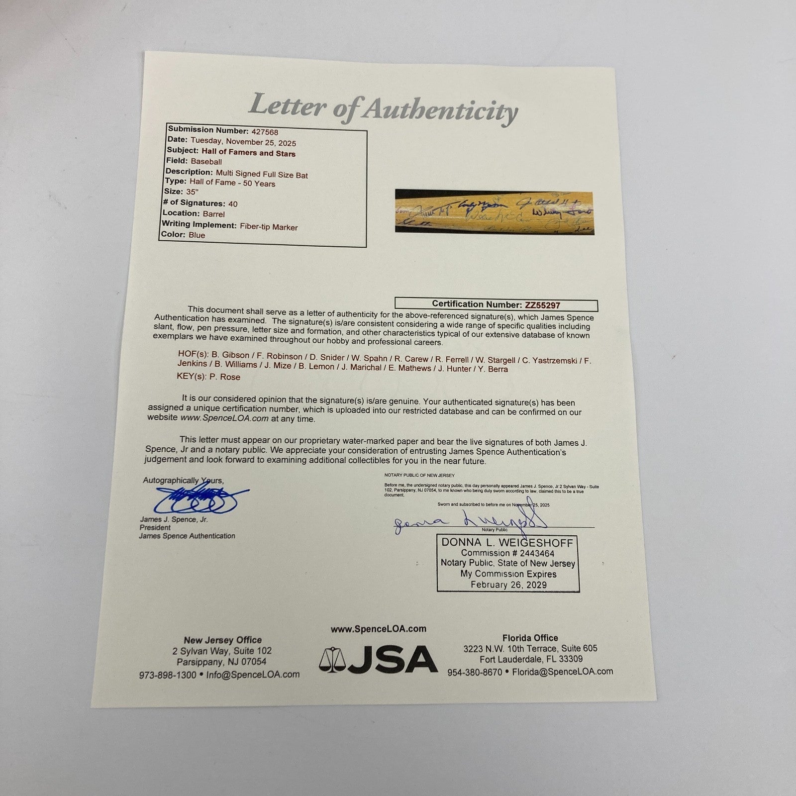 Hall Of Fame Multi Signed Cooperstown Baseball Bat 40 Sigs Willie Mays JSA COA