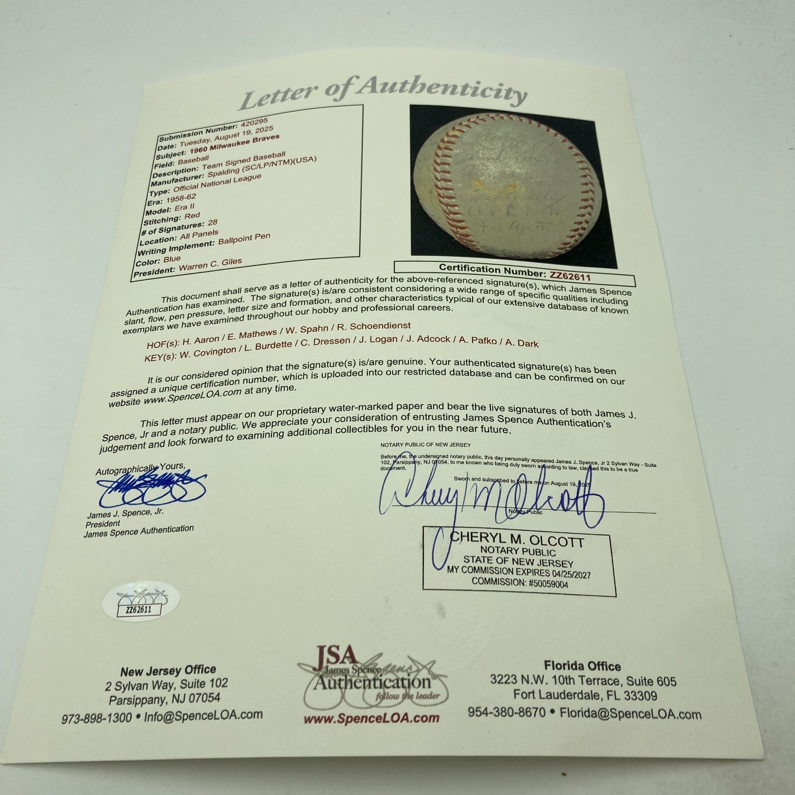 Hank Aaron 1960 Milwaukee Braves Team Signed Baseball JSA COA
