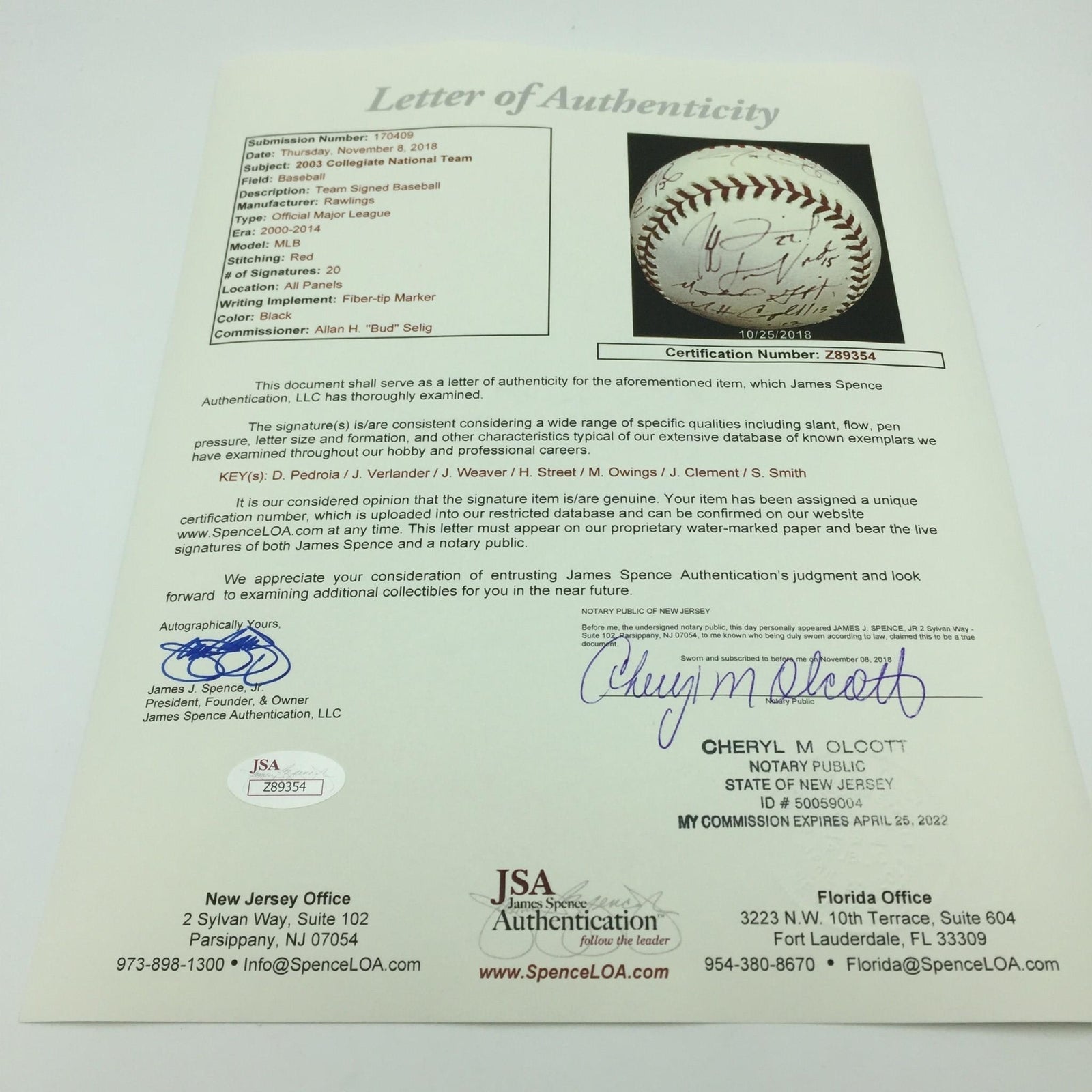 Extraordinary 2003 Collegiate National USA Team signed Baseball. This is the earliest known Justin Verlander and Dustin Pedroia signed baseball. 20 signatures. Full letter COA from JSA.