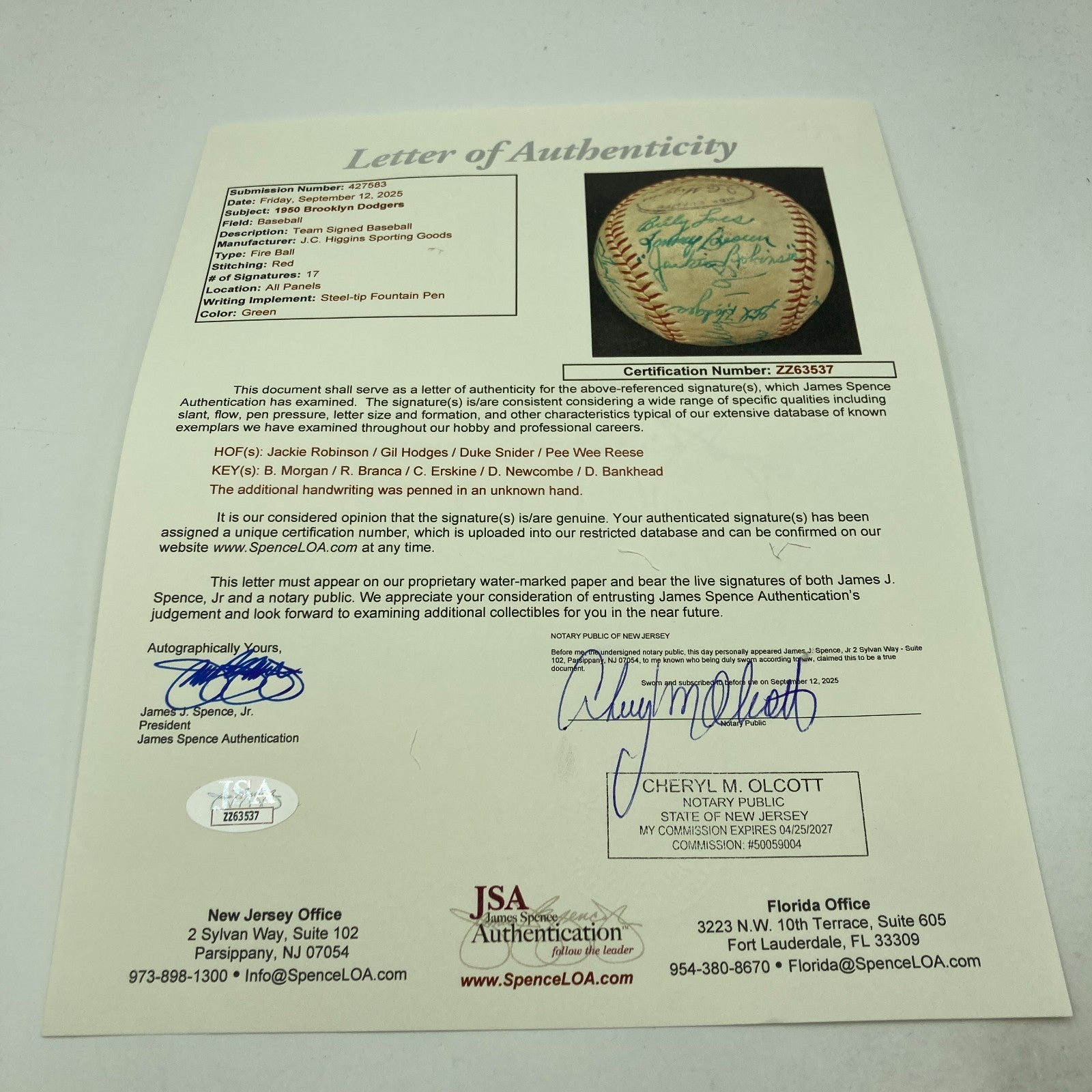 Jackie Robinson 1950 Brooklyn Dodgers Team Signed Baseball JSA COA
