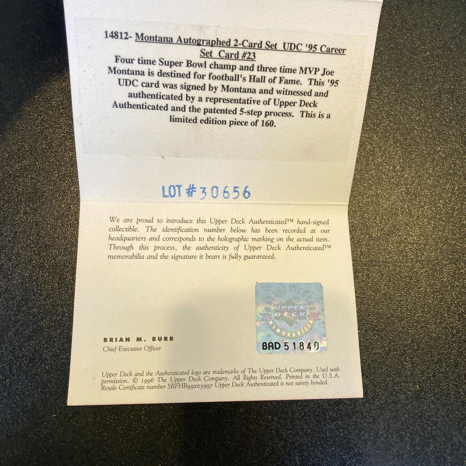 Joe Montana Signed 1995 Upper Deck Football Card UDA COA and original box