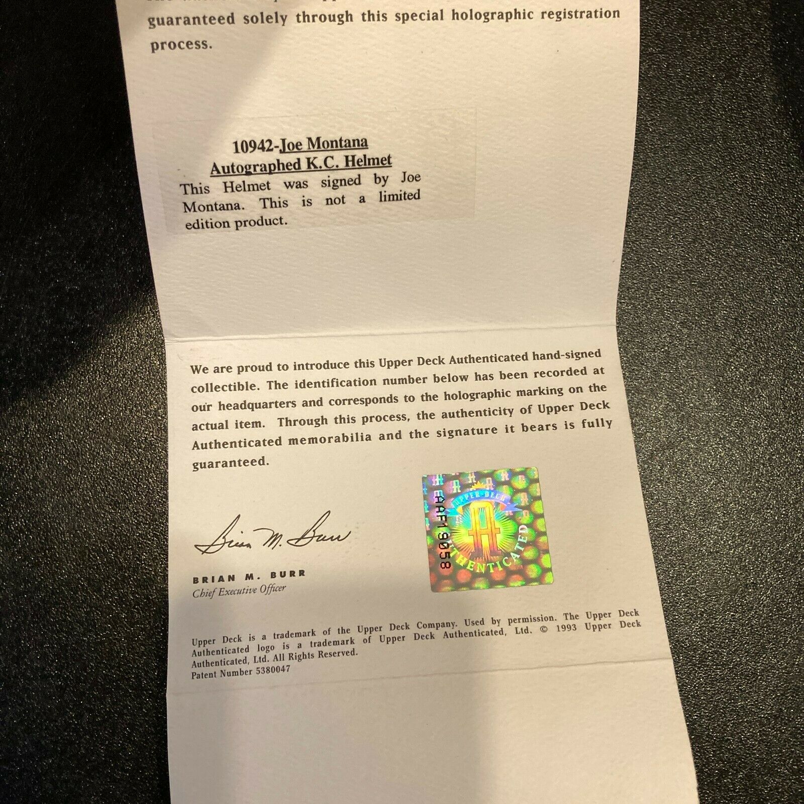 Joe Montana Signed Authentic Kansas City Chiefs Game Model Helmet UDA Upper Deck COA and original box