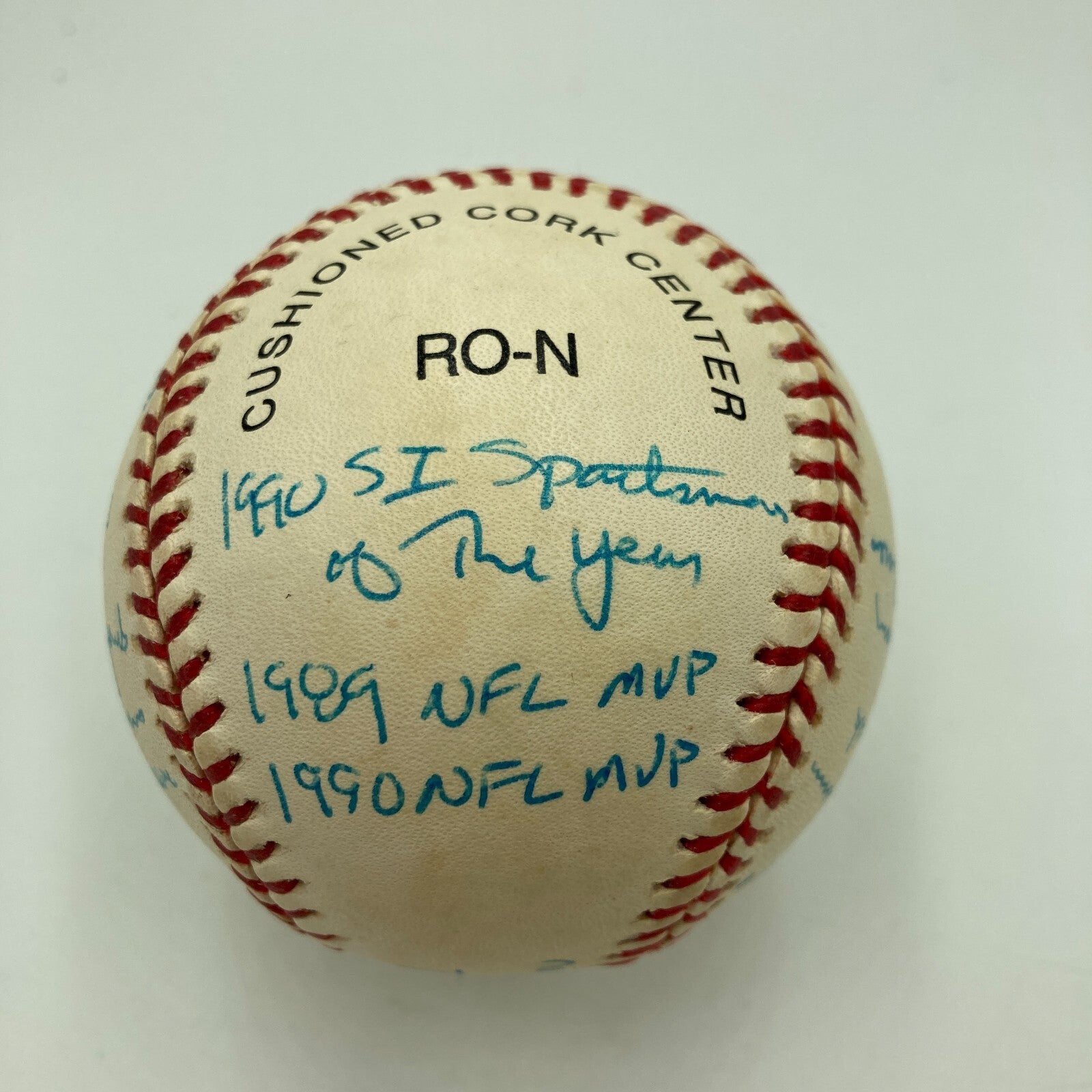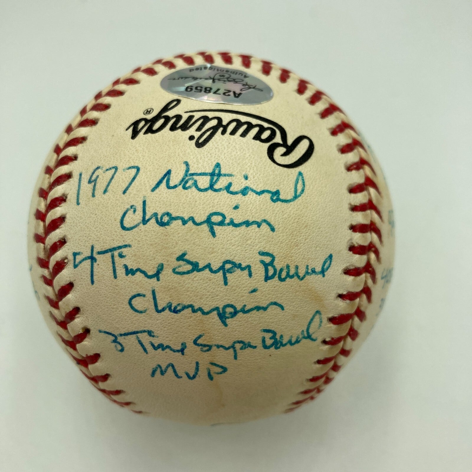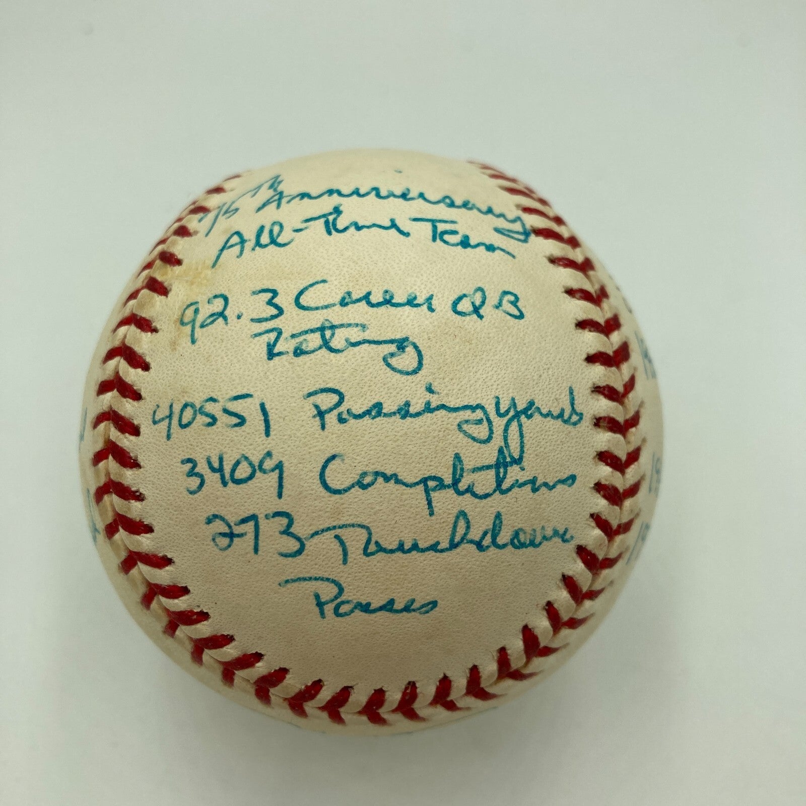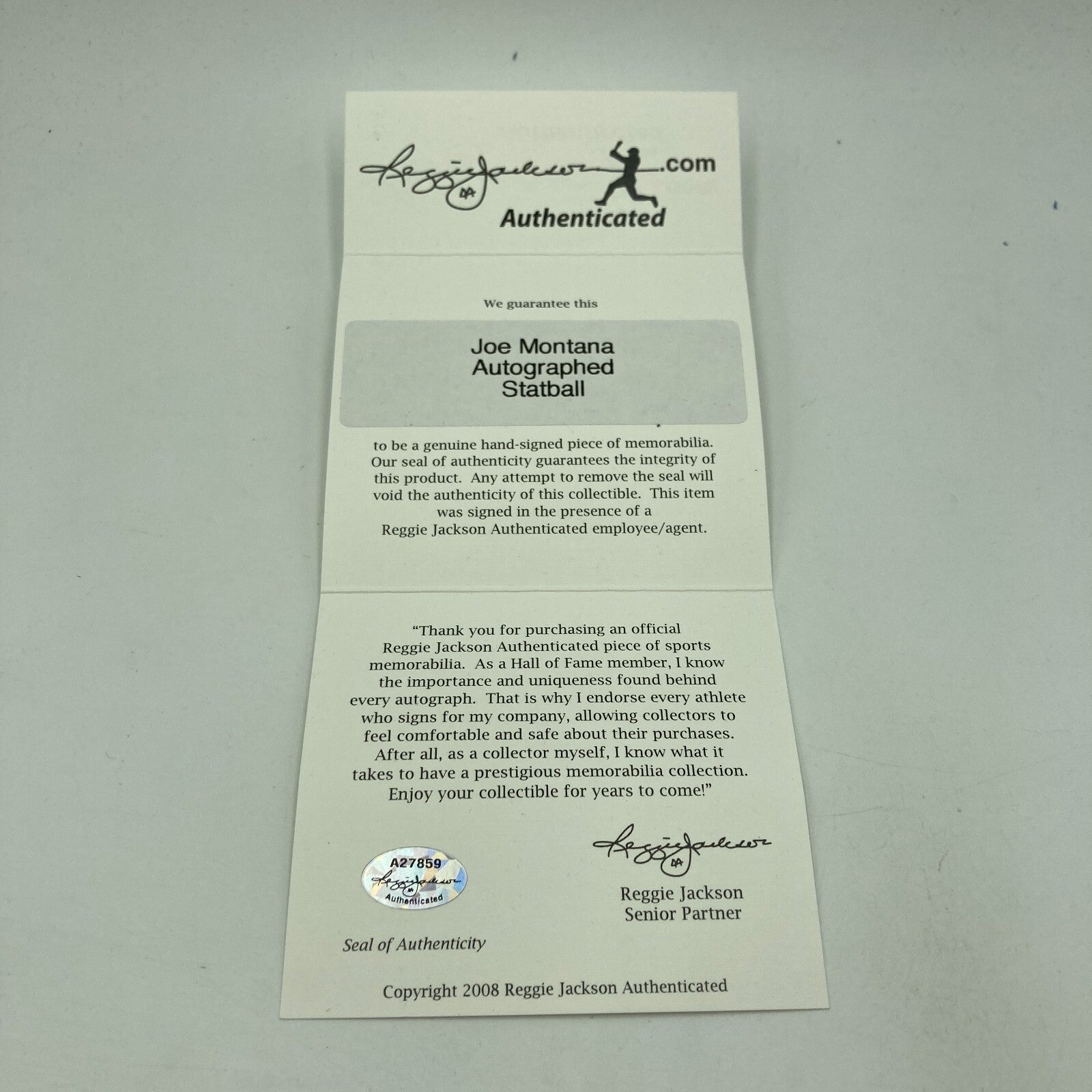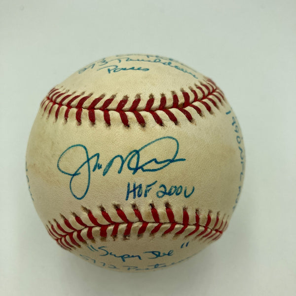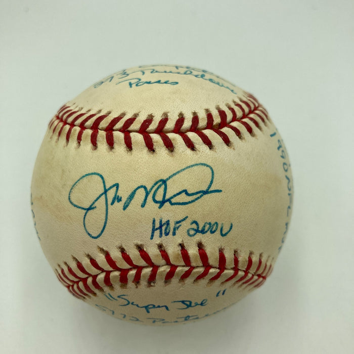 Joe Montana Signed Heavily Inscribed Career STAT Baseball Reggie Jackson COA