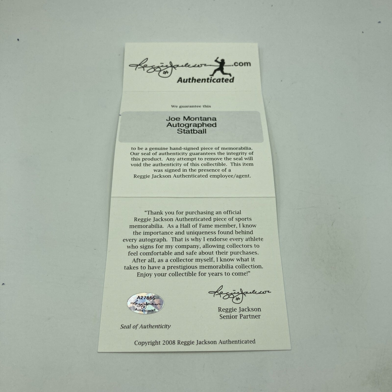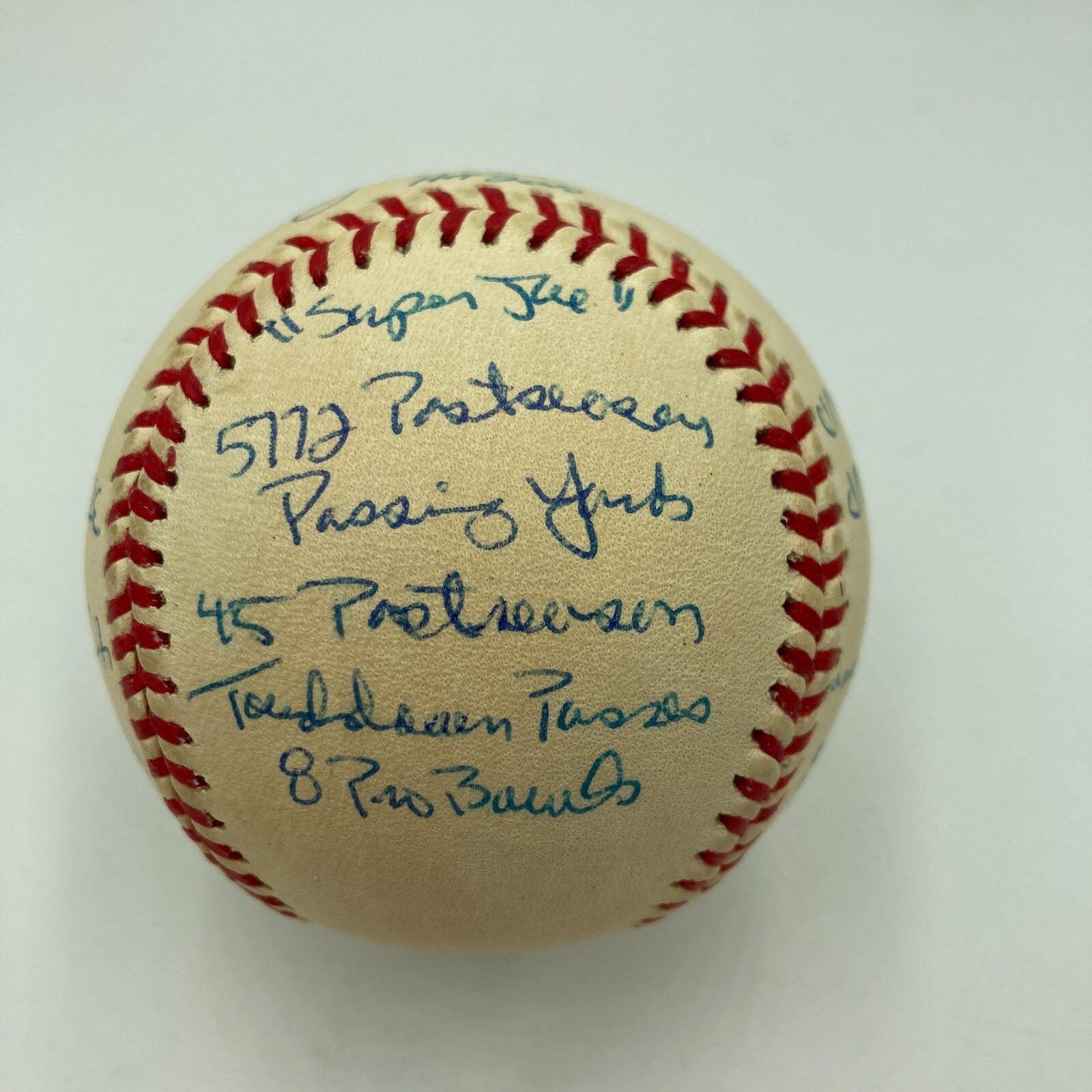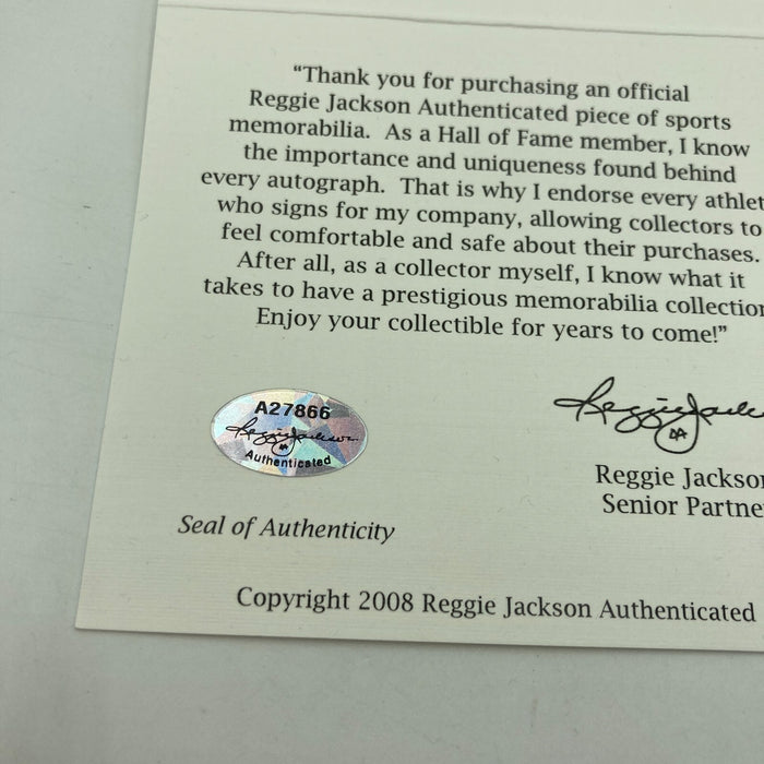Joe Montana Signed Heavily Inscribed Career STAT Baseball Reggie Jackson COA