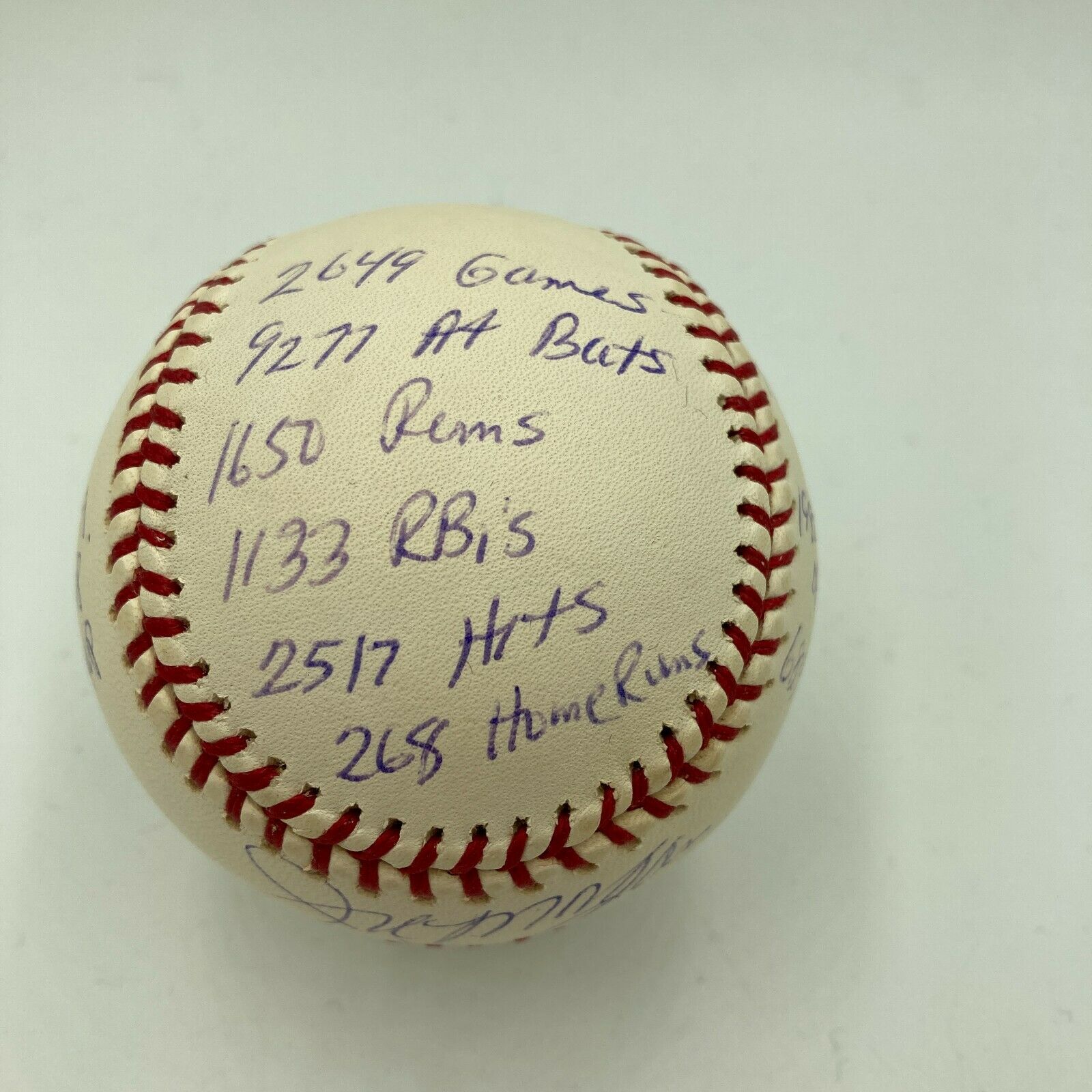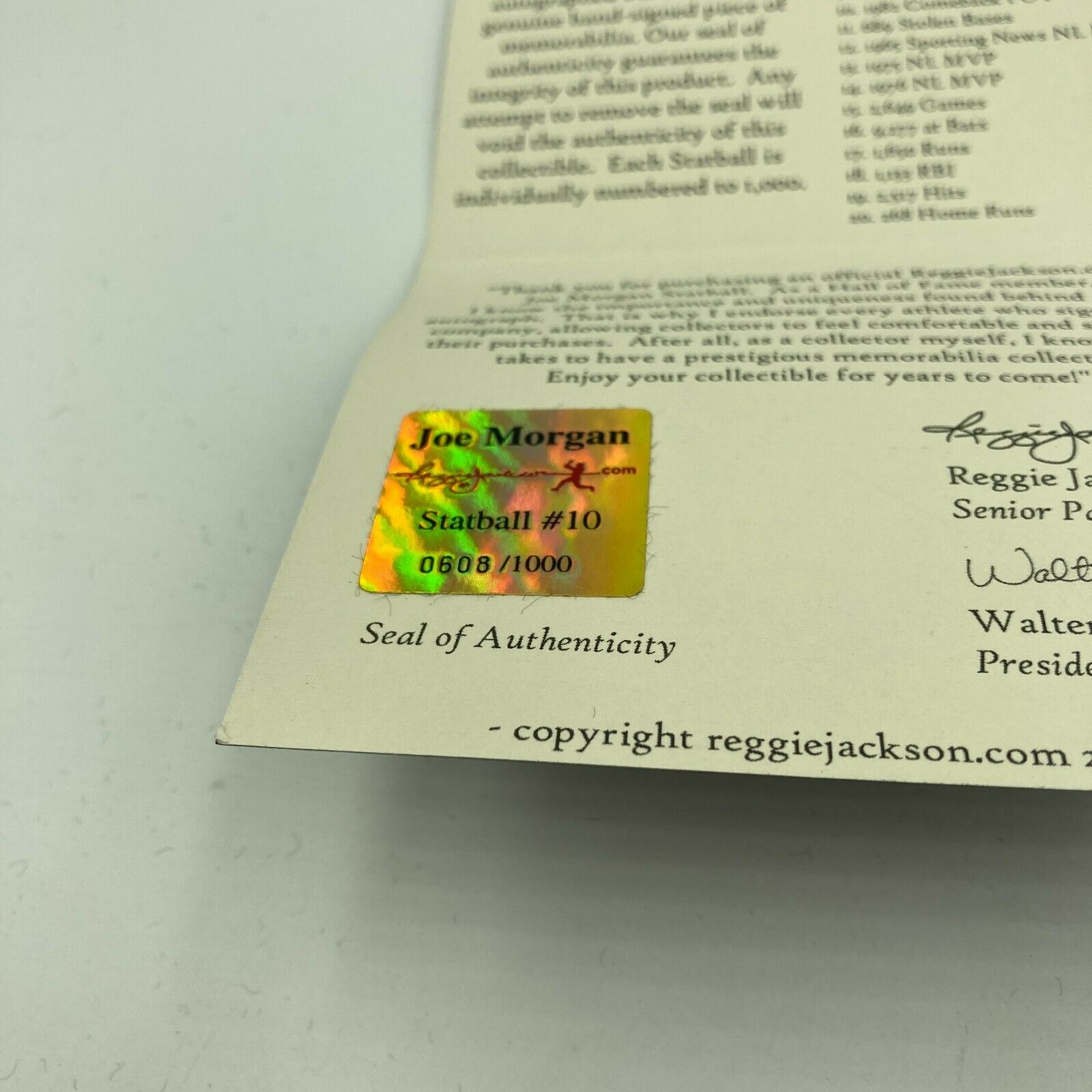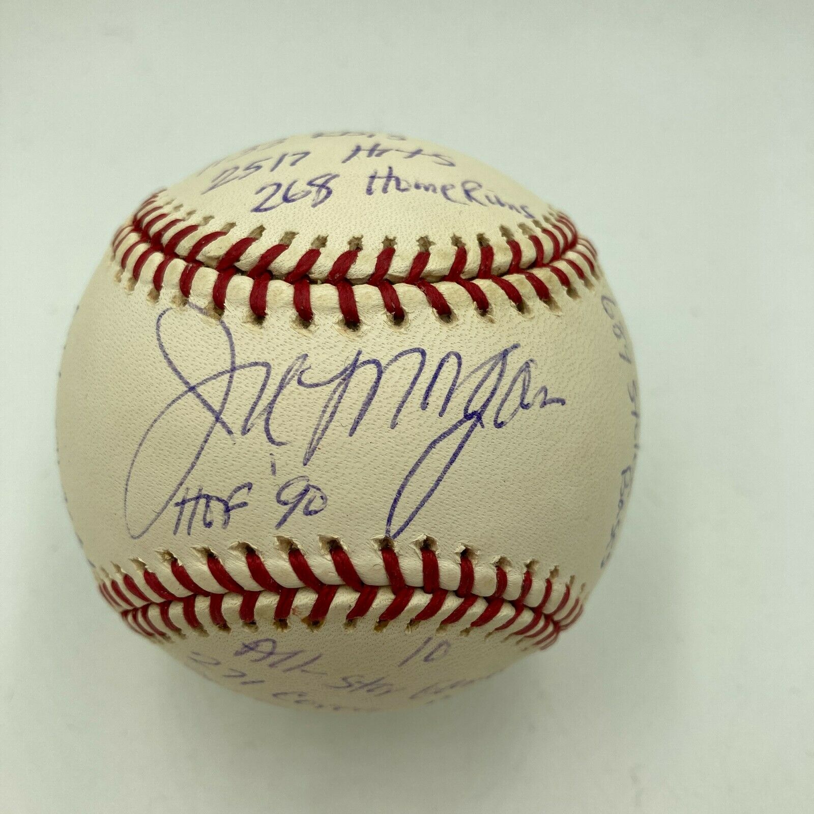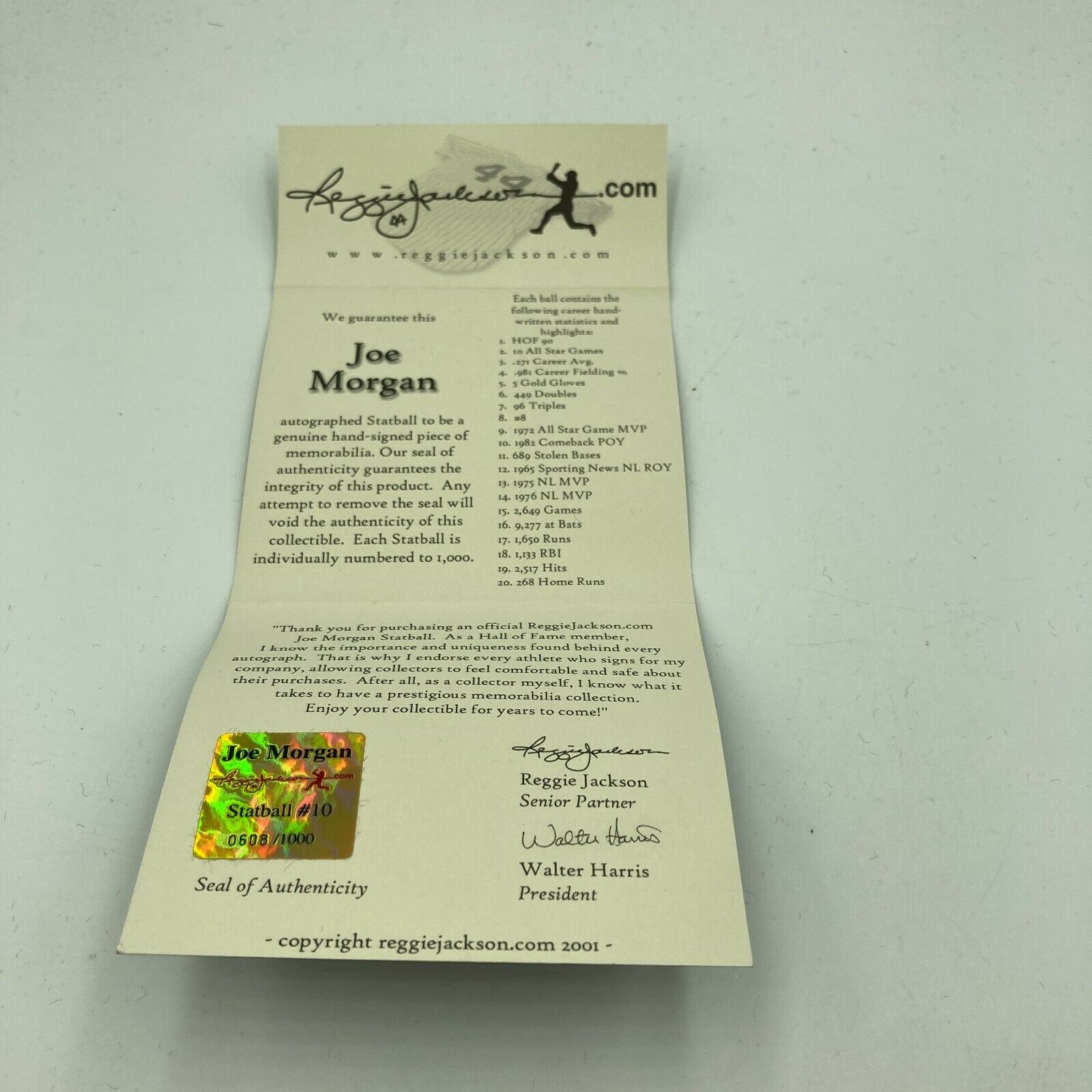 $399.00 Joe Morgan Signed Heavily Inscribed Career STAT Baseball Reggie Jackson COA Joe Morgan Signed Heavily Inscribed Career STAT Official Major League Baseball With Reggie Jackson COA, Hologram, bag and box. This is a stock ite... View full details