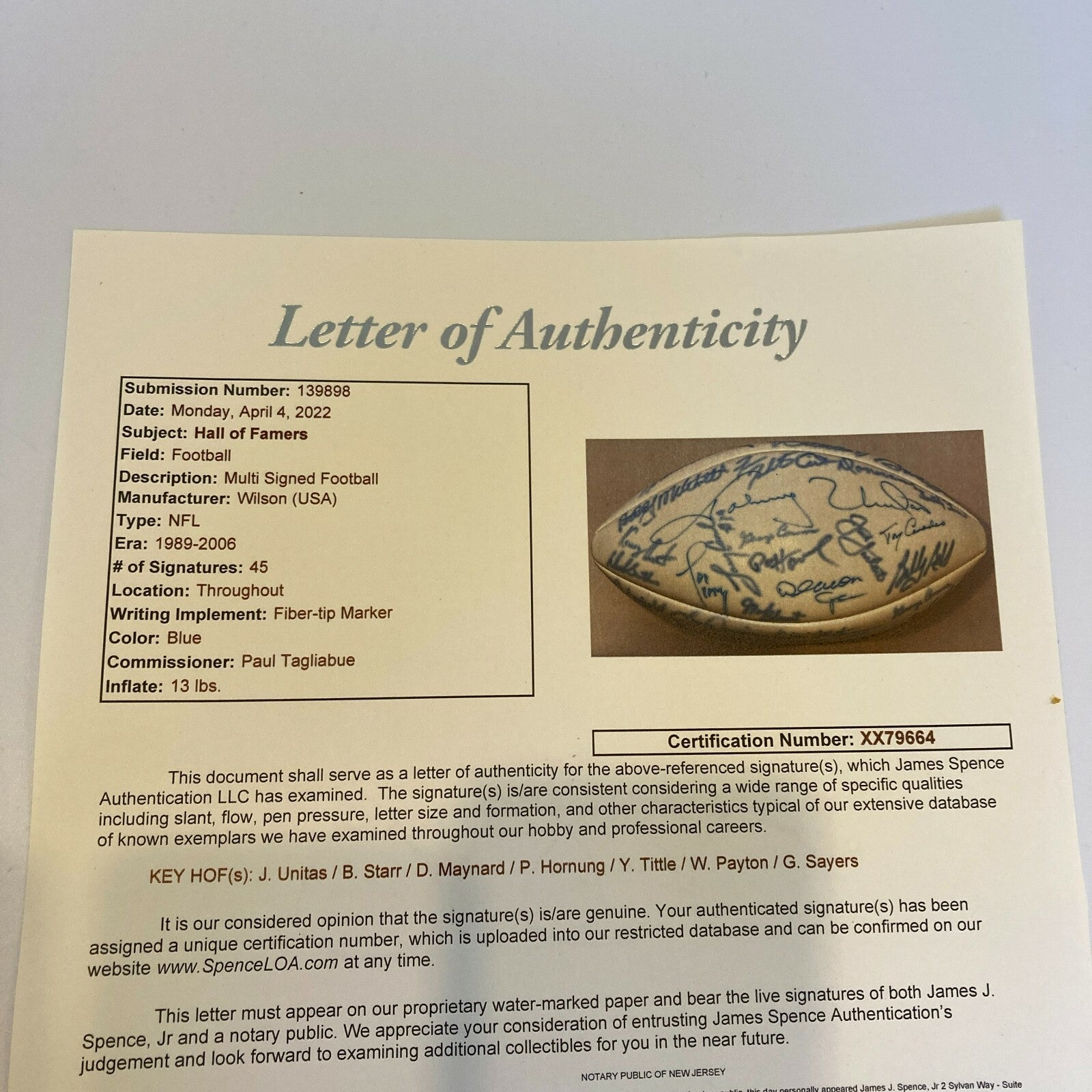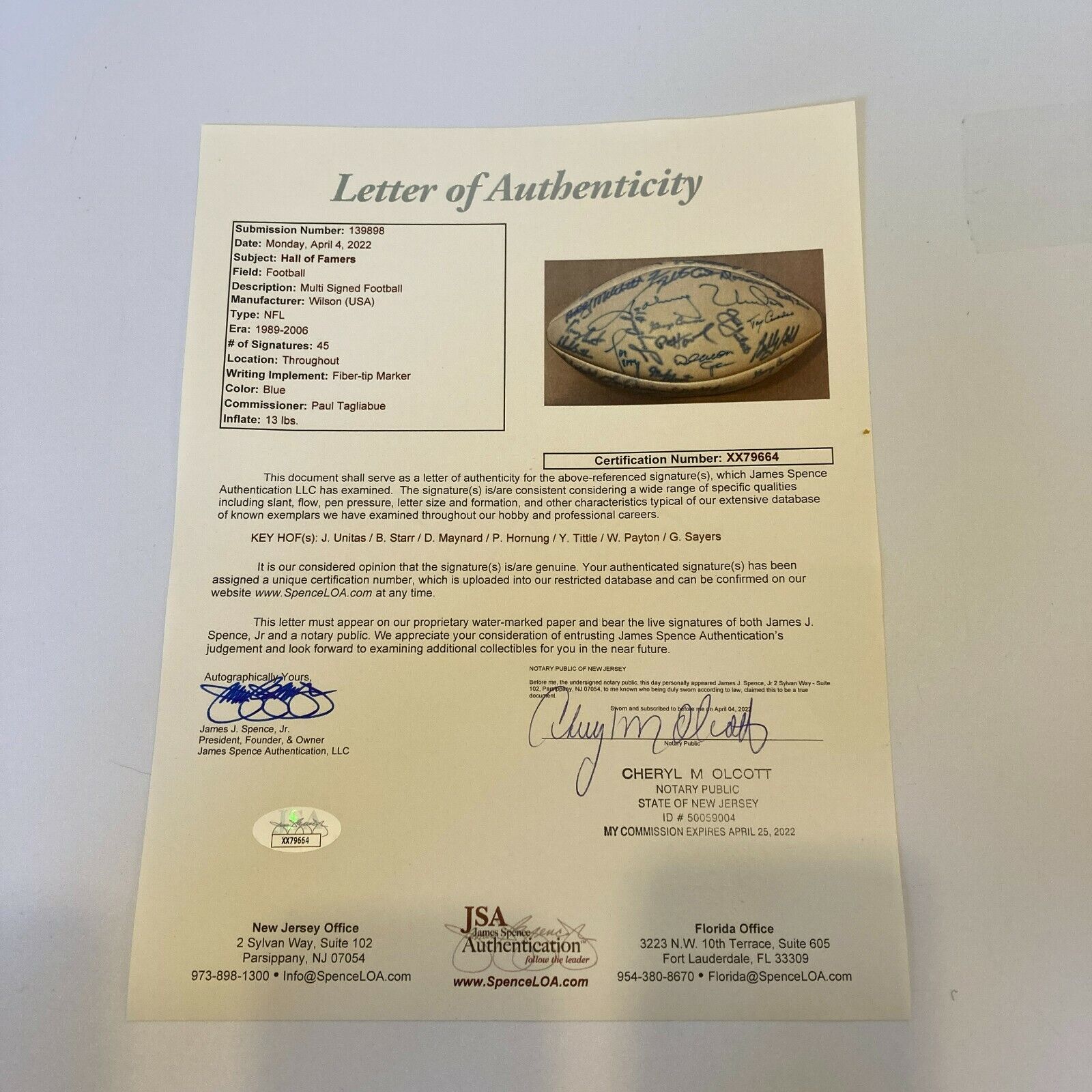 Johnny Unitas Walter Payton Bart Starr HOF Legends Signed Football 45 Sigs JSA