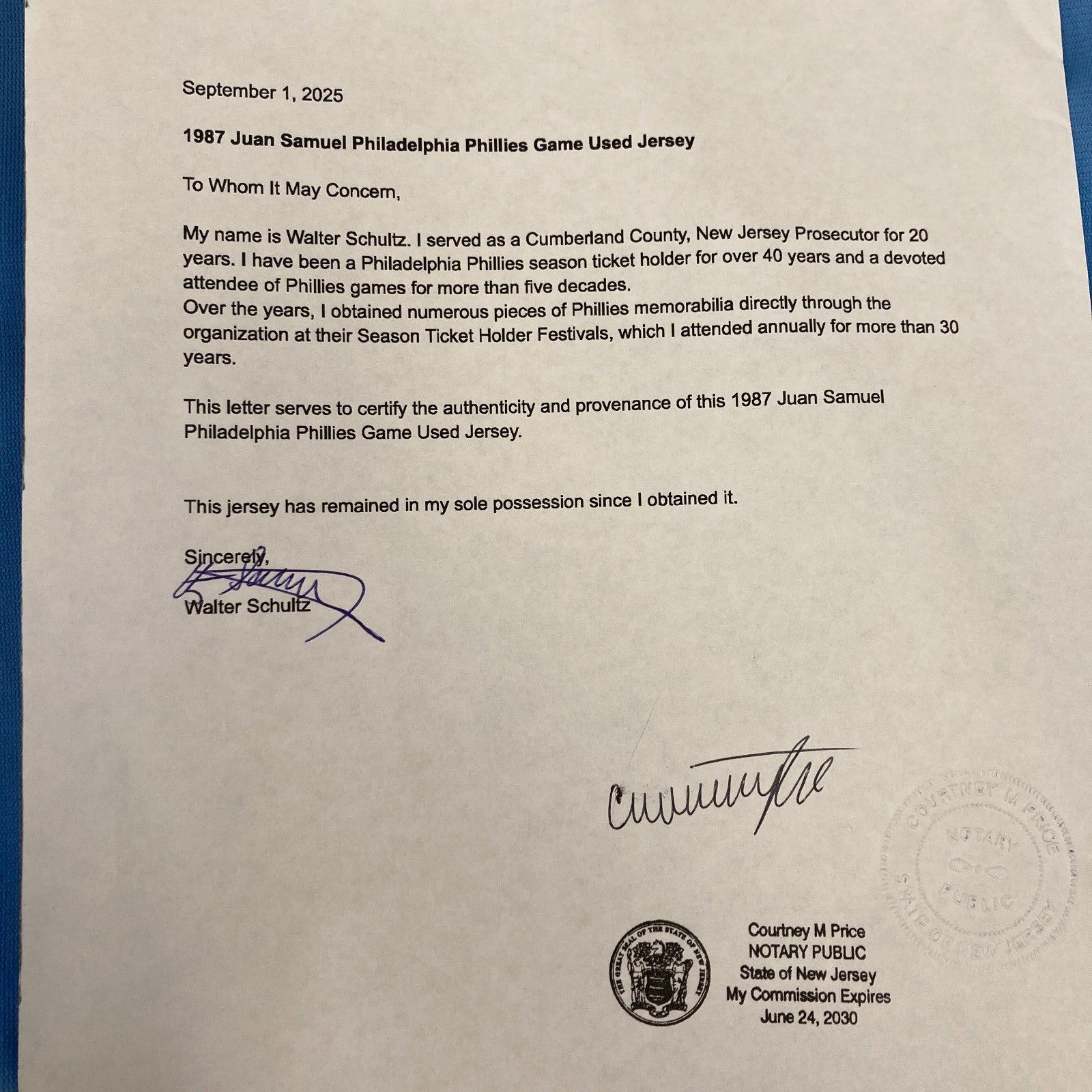 The Finest Juan Samuel 1987 Game Used Philadelphia Phillies Jersey MEARS A10