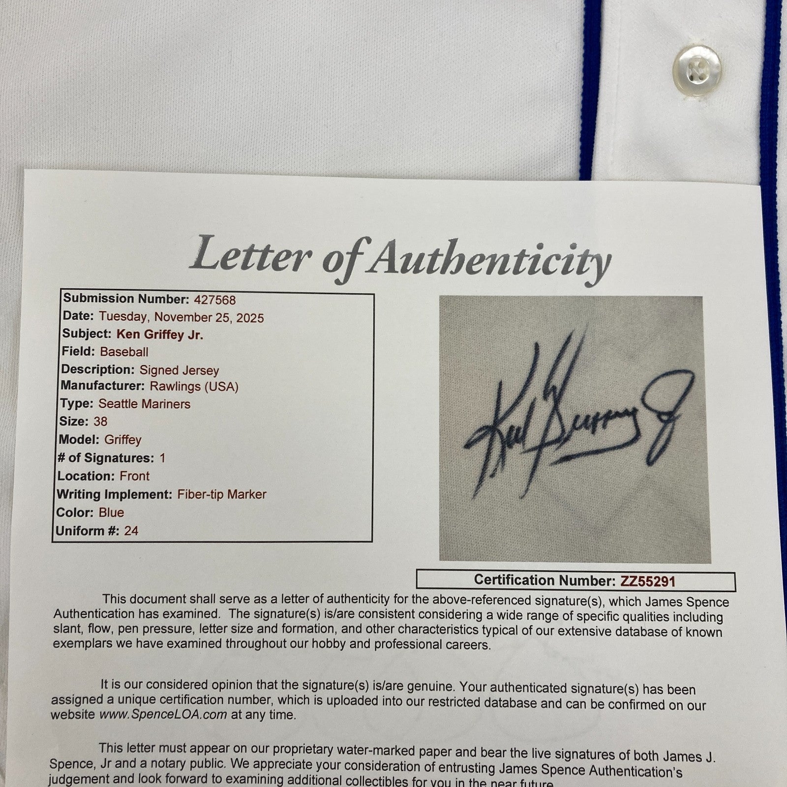 Ken Griffey Jr. Rookie Signed 1989 Seattle Mariners Rawlings Jersey JSA COA