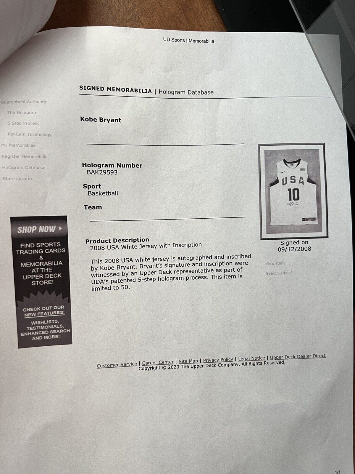 Stunning Kobe Bryant "2008 USA Gold" Signed Inscribed Authentic Nike Team USA Olympics Jersey With UDA Upper Deck Hologram Limited Edition #25/50. Beautifully custom framed.