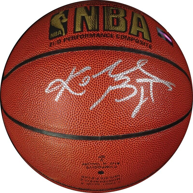 Signed boldly in a silver paint pen, this NBA Basketball has been autographed by Los Angeles Lakers Superstar and Basketball Hall of Famer, Kobe Bryant. Kobe Bryant has signed this basketball January 26th, 2000. Exactly 20 years to the day before he unfortunately passed. A shooting guard, he spent his entire 20-year career with the Los Angeles Lakers. Widely regarded as one of the greatest basketball players of all time, Bryant won five NBA championships, was an 18-time All-Star, a 15-time member of the All-NBA Team, a 12-time member of the All-Defensive Team, the 2008 NBA MVP, and a two-time NBA Finals MVP. Bryant also led the NBA in scoring twice, and ranks fourth in league all-time regular season and postseason scoring. He was posthumously voted into the Naismith Memorial Basketball Hall of Fame in 2020 and named to the NBA 75th Anniversary Team in 2021. A great piece of Kobe memorabilia authenticated with a PSA LOA.