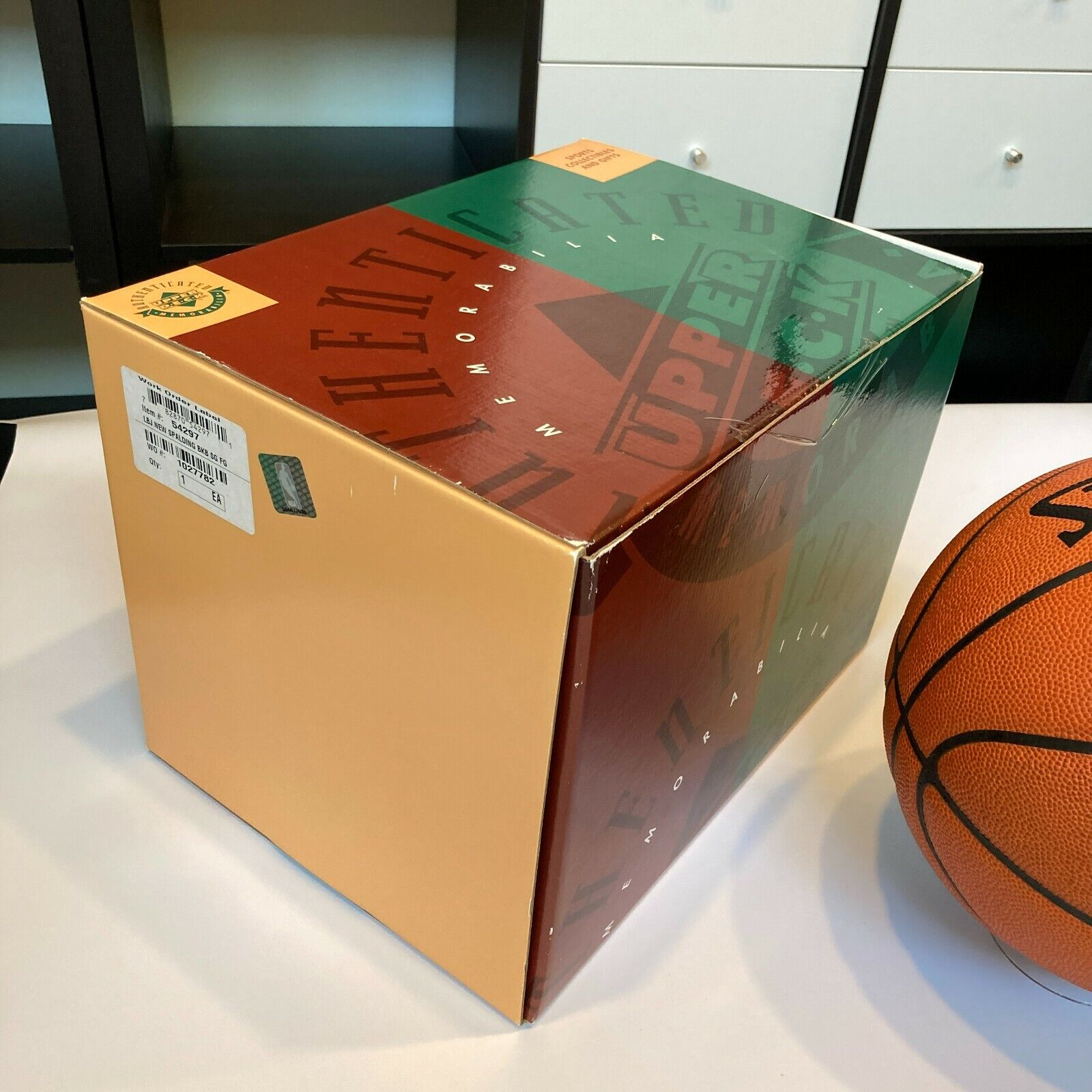 Official NBA David Stern game ball is signed "23 LeBron James" above the Spading panel in black sharpie, with the UDA serialized holographic sticker (BAK16951) close at hand. The ball is Mint. Housed in original UDA storage box. COA from Upper Deck Authenticated (BAK16951).