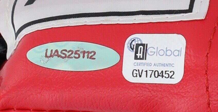 The amount of legendary sports regality contained in this Everlast Boxing is staggering, as it is signed in bold black marker by celebrated pugilist Muhammad Ali and NBA Hall of Famer Michael Jordan. Jordan who captured a staggering six NBA titles in the form of two three-peats, is also the owner of six NBA Finals MVP Awards amongst a legion of accomplishments. In a three-decade career, Ali became as big a star outside the ring as he was inside it. His taunting rhymes and tireless fight for religious freedom and civil rights almost eclipse the fact that he was a three-time heavyweight champ and was the victor in some of the greatest fights in boxing history. Ali's title of "The Greatest" might have been self-awarded, but in retrospect, is there a better two words in the English language that better describe him?