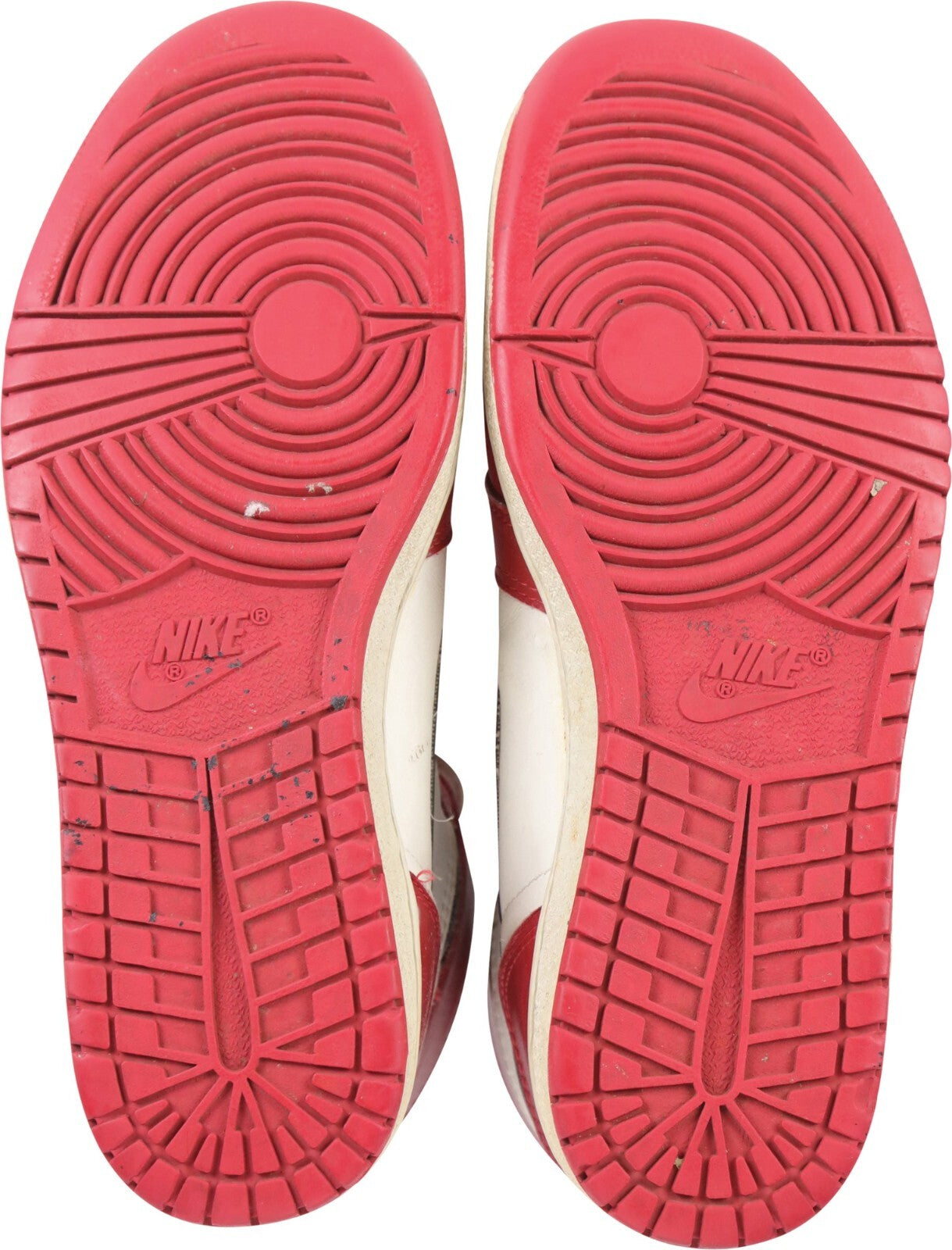 Pair of iconic Nike Air Jordan I sneakers, with each shoe individually signed by Michael Jordan on the outer side. Both Jordan signatures have been scripted in black marker. Each of shoes bears the production code "9 850709TH" on the interior, with 9 denoting the size, 85 the year, and 0709 the date of its manufacture (between July and September). Nike Air Jordan I sneakers are scarce and those signed by Jordan are especially prized by collectors. This is an outstanding pair, especially considering that Jordan has signed each of the shoes, which offers tremendous "break value" if so desired. Individual full LOAs from PSA for each signed shoe.
