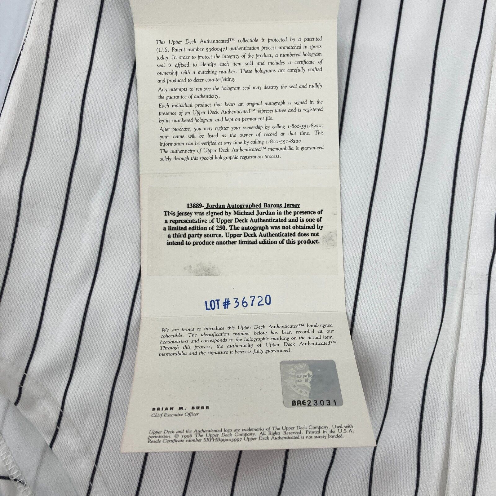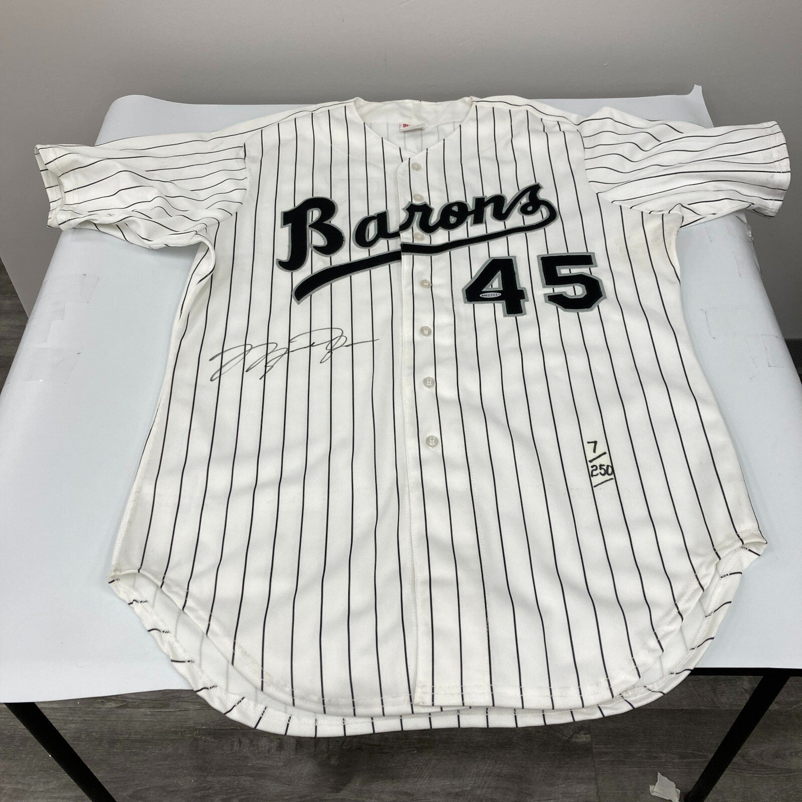Michael Jordan Signed Birmingham Barons Baseball Jersey With Upper Deck UDA COA. There are some tape marks from a previous frame job. See photos.