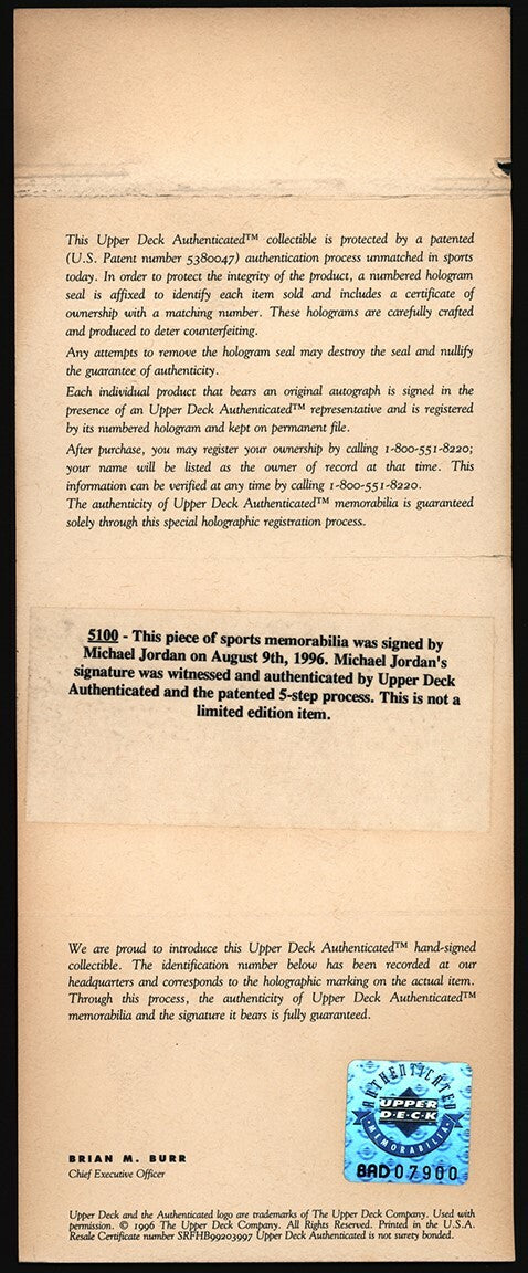 Rare Michael Jordan signed basketball, on an Official NBA Game ball. Simple yet sublime, ball presents like new and MJ's bold mint signature in silver Sharpie takes up the panel above the Spalding brand name. Comes with UDA hologram and Certificate of Authenticity.