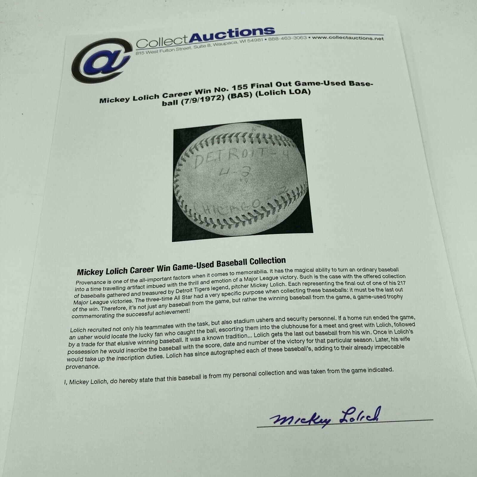 Mickey Lolich Signed Career Win No. 155 Final Out Game Used Baseball Beckett COA