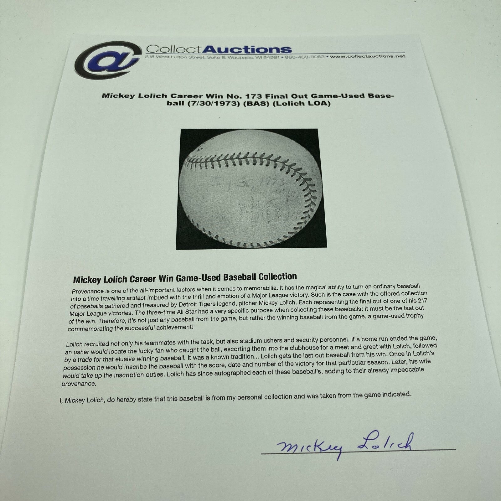 Mickey Lolich Signed Career Win No. 173 Final Out Game Used Baseball Beckett COA