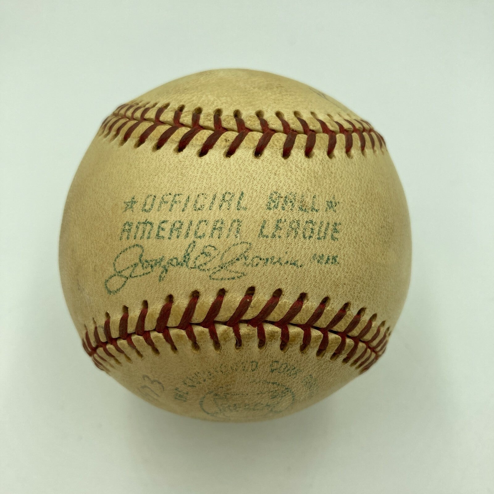 This is the actual game used baseball from the final pitch of the game from the personal collection of Mickey Lolich.