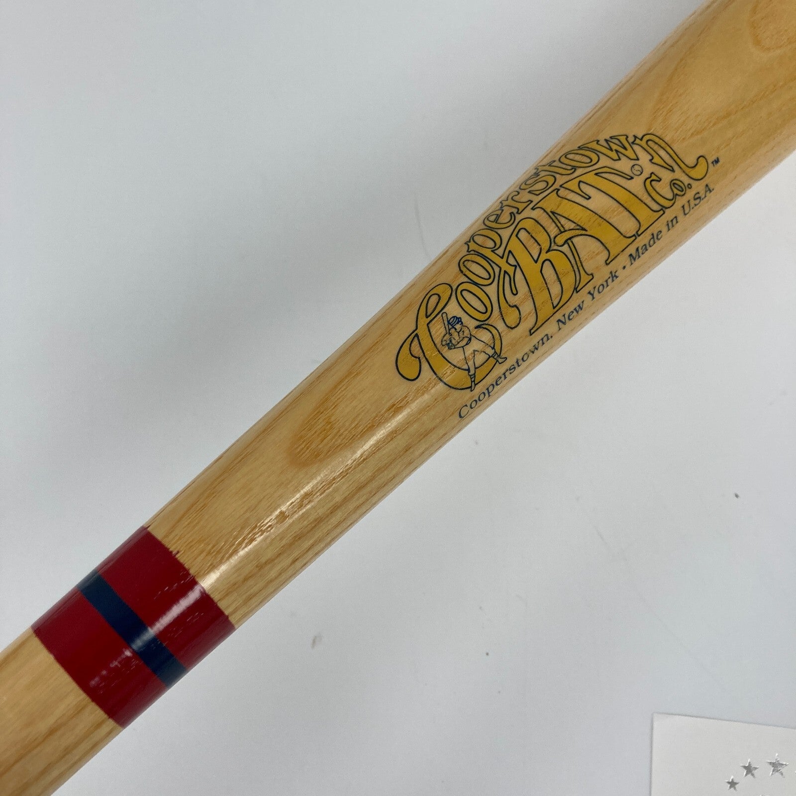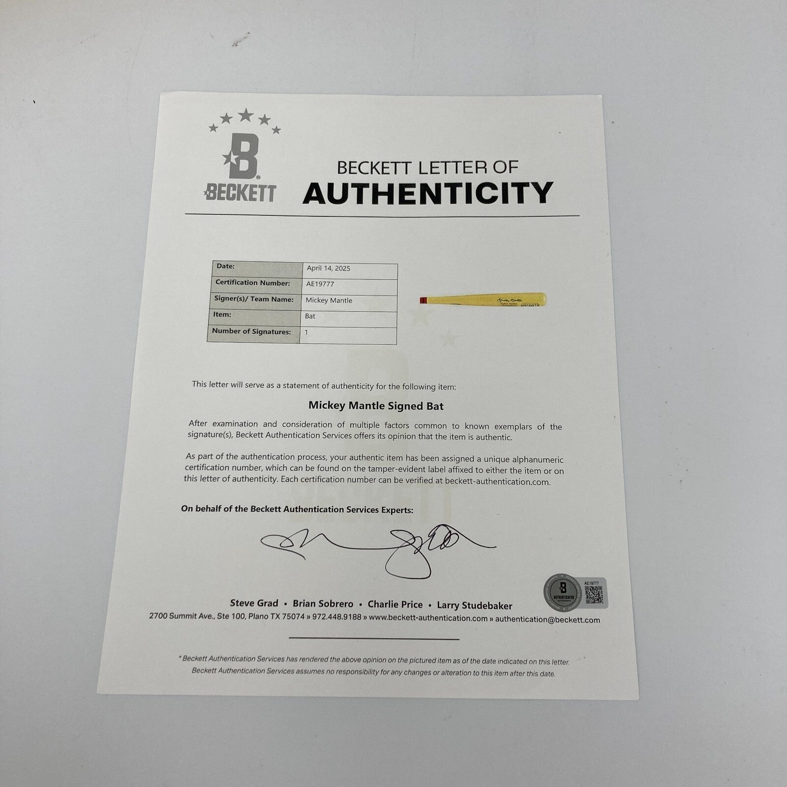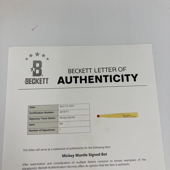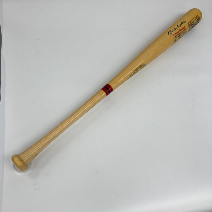 Presented Cooperstown Bat Co. lumber with gorgeous Yankee Stadium cachet is signed by the Commerce Comet in bold blue sharpie. The bat is near mint and the autograph grades 9/10 in strength. Awesome display piece. Full LOA from Beckett Authentication Services.