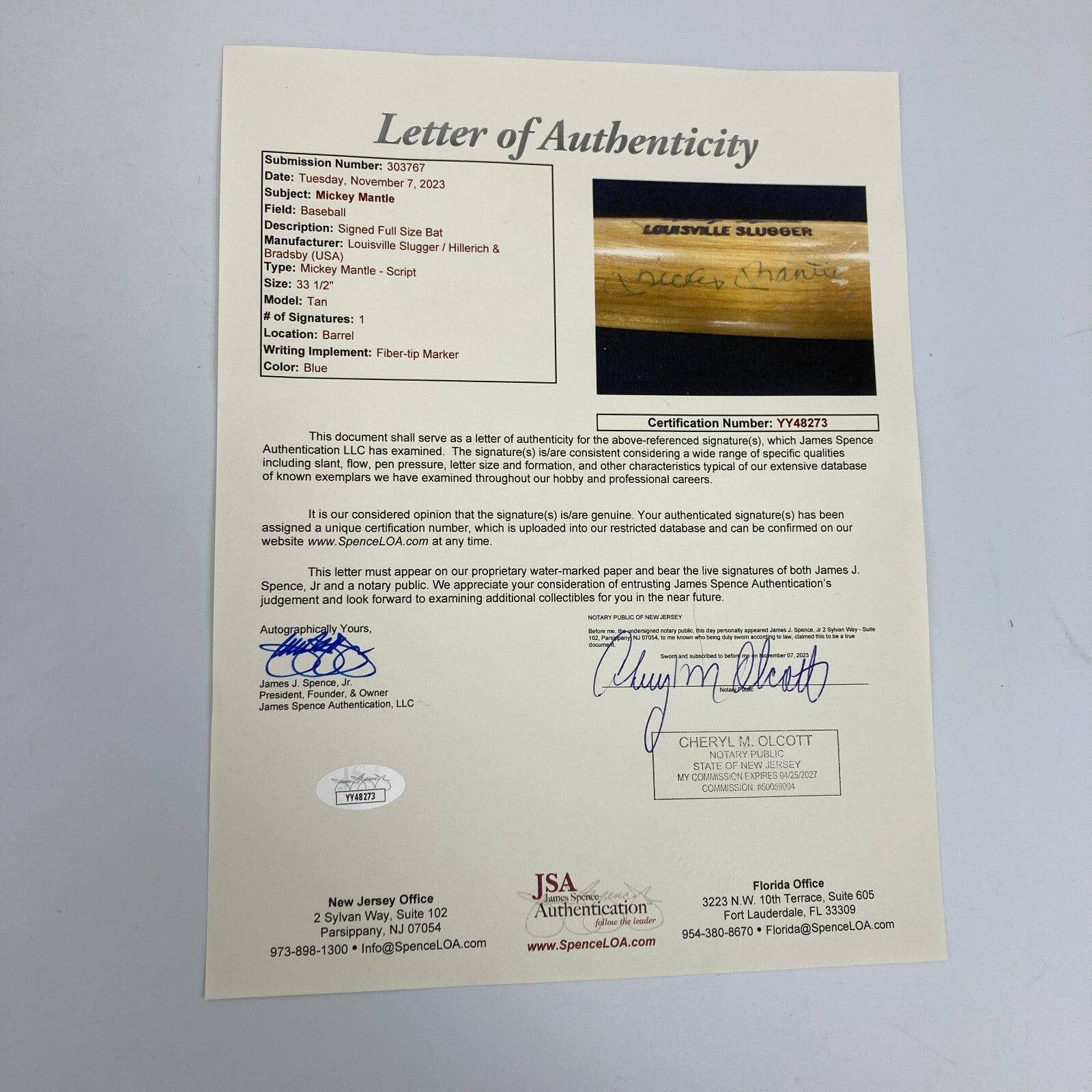 Comes with an LOA from JSA for signature.