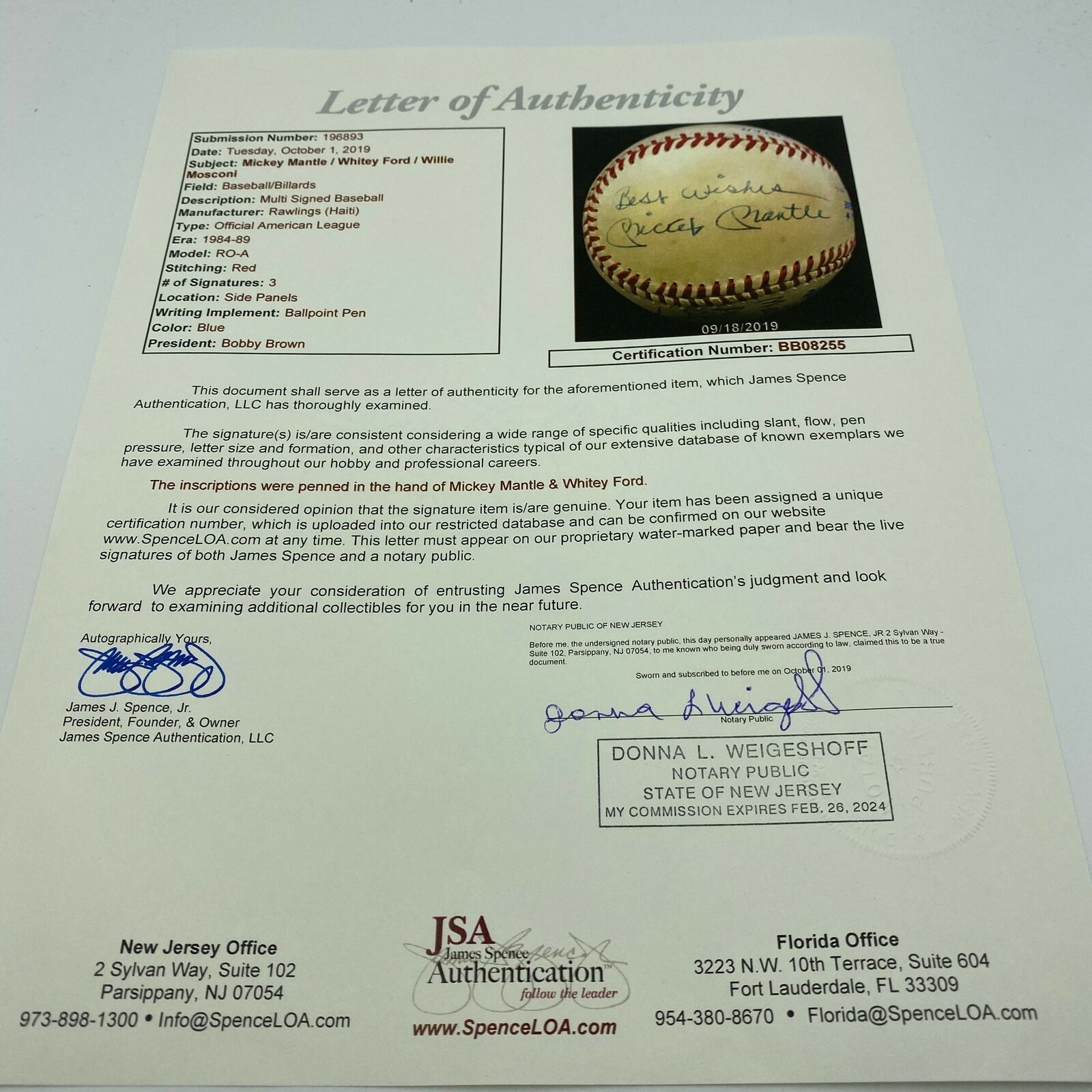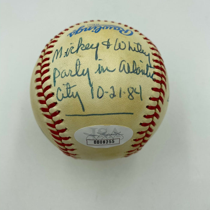 Mickey Mantle Whitey Ford Willie Mosconi 1989 AC Party Signed Baseball JSA COA