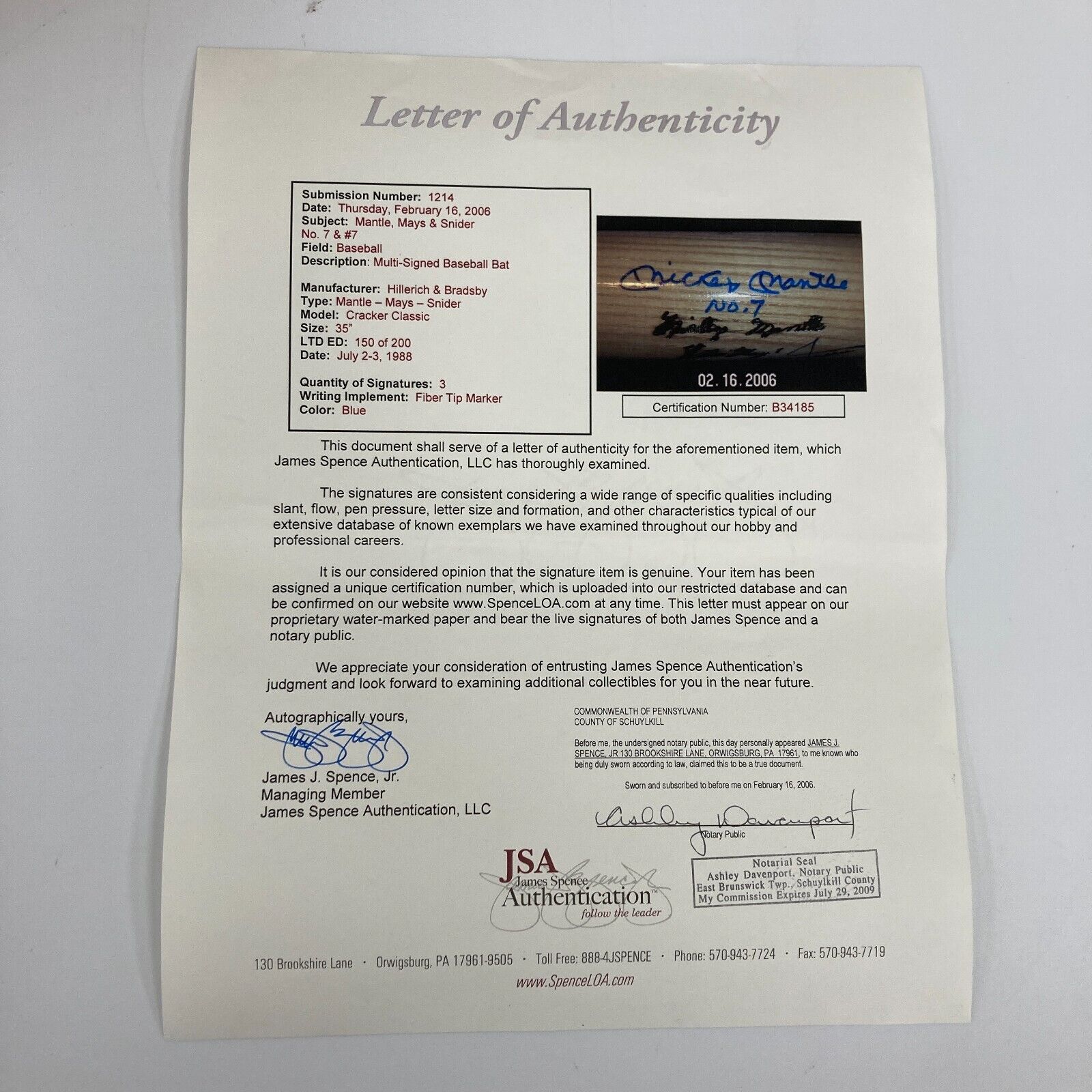 Mickey Mantle Willie Mays & Duke Snider Signed Baseball Bat JSA COA