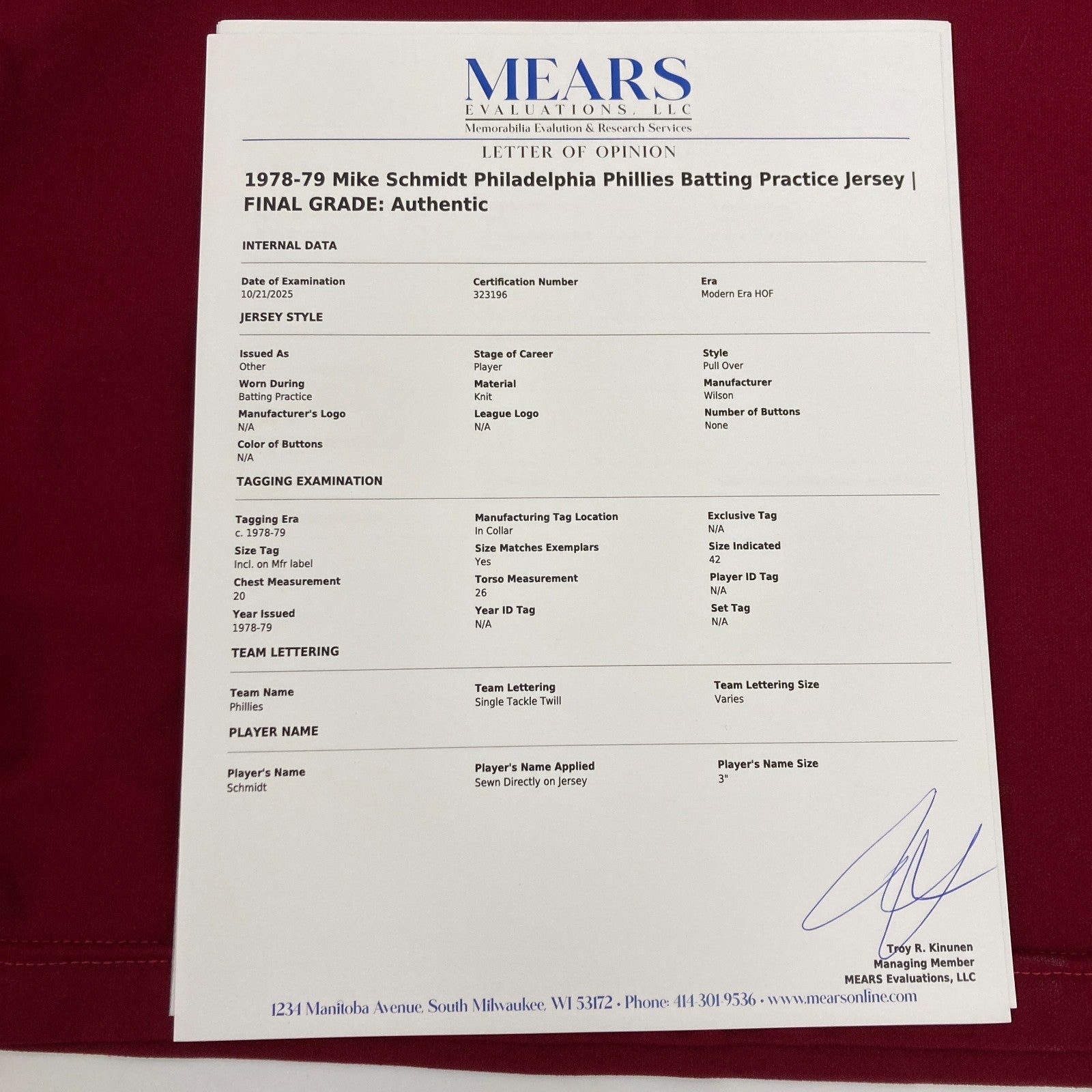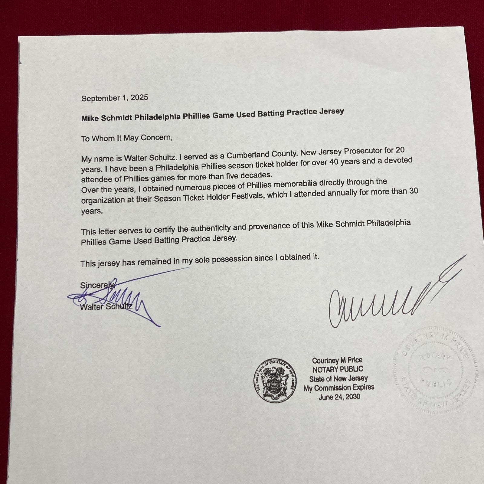 Click or scroll to zoom Tap or pinch to zoom Click or scroll to zoom Tap or pinch to zoom Click or scroll to zoom Tap or pinch to zoom Click or scroll to zoom Tap or pinch to zoom Click or scroll to zoom Tap or pinch to zoom Click or scroll to zoom Tap or pinch to zoom Click or scroll to zoom Tap or pinch to zoom Click or scroll to zoom Tap or pinch to zoom Click or scroll to zoom Tap or pinch to zoom Click or scroll to zoom Tap or pinch to zoom Click or scroll to zoom Tap or pinch to zoom Mike Schmidt 1978 Game Used Philadelphia Phillies Jersey MEARS COA $4,995.00 1 2 3 4 5 6 7 8 9 10+ Quantity Quantity Add to cart This item is a recurring or deferred purchase. By continuing, I agree to the cancellation policy and authorize you to charge my payment method at the prices, frequency and dates listed on this page until my order is fulfilled or I cancel, if permitted. Mike Schmidt 1978 Game Used Philadelphia Phillies Batting Practice Jersey MEARS COA Comes with full letter COA from MEARS and signed and notarized Letter Of Provenance from the original Owner who got it directly from the Phillies. T#13