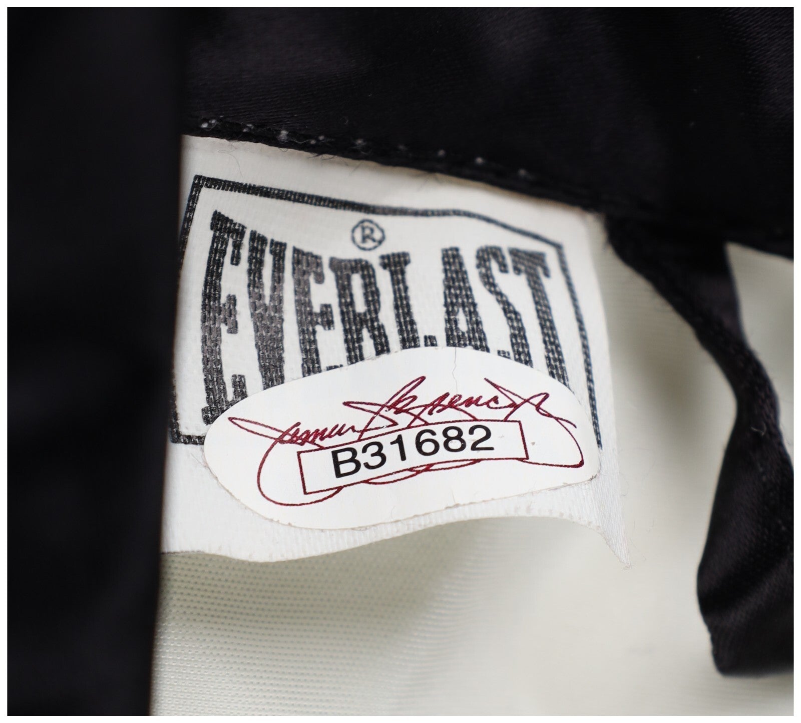 Autograph Certified and Graded MINT 9 by PSA/DNA (U04326). Presented is a white satin Everlast boxing robe and bag, signed by famed pugilist and activist Muhammad Ali. The multi-belt champion was one of the most impressive athletes in American history, achieving a 56-5 record in the boxing ring and winning the gold medal at the 1960 Rome Summer Olympics at light-heavyweight. Ali has penned his flowing signature in black marker on the front left corner of this boxing robe. This item exhibits a generally uncirculated manner of appearance and is accompanied by an LOA from PSA/DNA (MINT 9) and a sticker from JSA (B31682) for the signature.