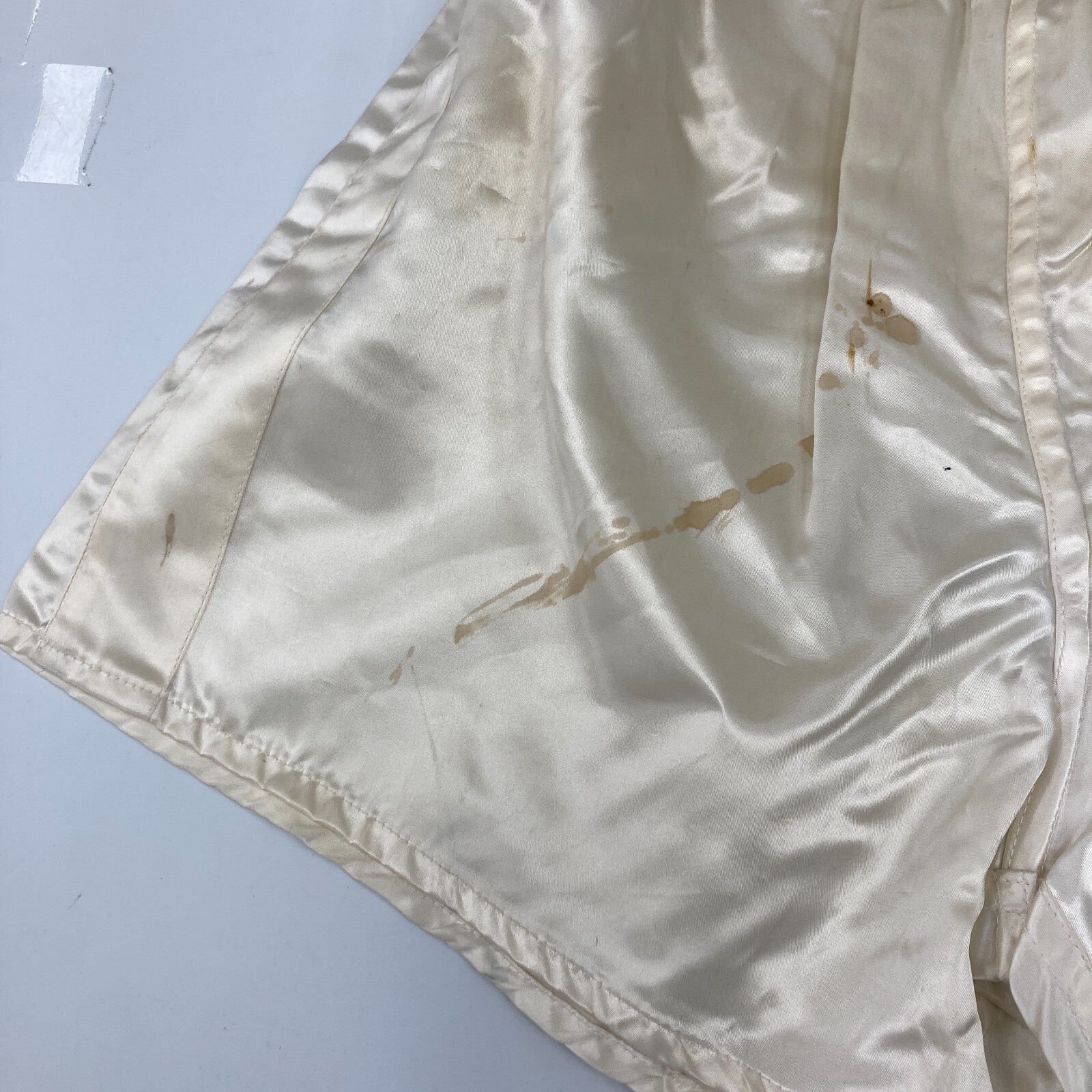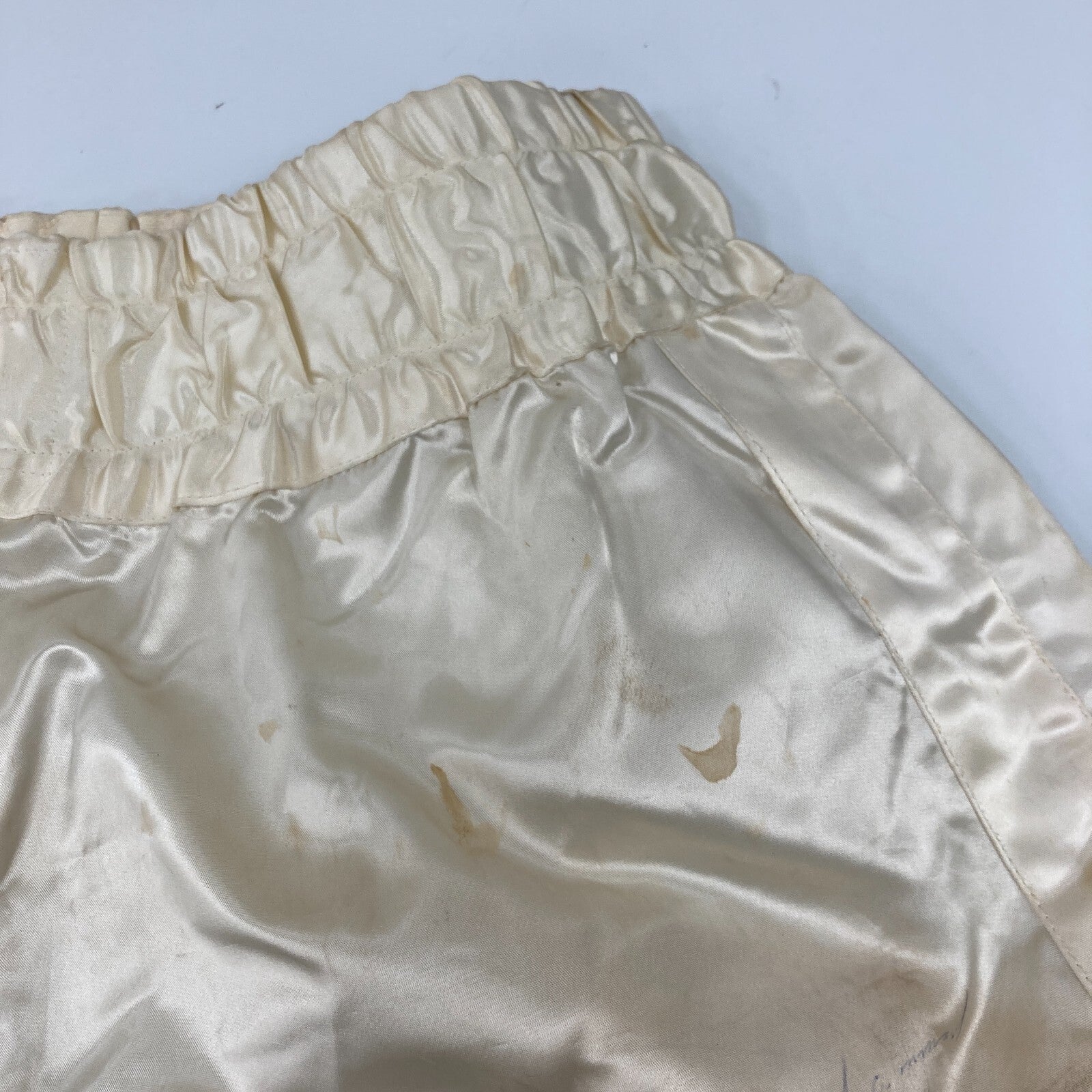 Muhammad Ali was known as "The Greatest," and many boxing experts agree with that appellation, considering him the greatest heavyweight in history. Born as Cassius Clay, the Kentucky native began boxing at 12 years old, and he won the Light Heavyweight Gold Medal in the 1960 Summer Olympics. He took his first World Heavyweight Championship on Feb. 25, 1964, when he defeated Sonny Liston in a major upset when Liston failed to answer the bell in Round 7 for a TKO victory. In the rematch with Liston, held in Lewiston, Maine in May 1965, Ali again defeated Liston, this time in Round 1 on a knockout by what some called a "phantom punch," implying that Liston went down on purpose. During the Vietnam War, Ali claimed conscientious objector status, refusing to be drafted. He was convicted of draft evasion, and after almost a four-year ban from boxing, Ali resumed boxing in 1970 after the U.S. Supreme Court overturned his conviction. Ali fought the World Heavyweight Champion, Joe Frazier, in what was termed "The Fight of the Century" on March 8, 1971, and Ali lost by a unanimous decision, the first loss of his professional career. After a defeat of Frazier in a rematch, in 1974, Ali took back the World Heavyweight Championship with a defeat of George Foreman. In 1975, the year when the offered boxing trunks were used, Ali defeated Joe Frazier in their third fight by a TKO, but "The Thrilla in Manila" took a great physical toll on Ali, and he was never the same after this epic battle with Frazier. These shorts, which appear to have been used. Waist measures 36 inches. The trunks show good use, with stains on the right, middle and left front, and a few stains on the left and right back sections of the shorts. They are possible blood stains. You can see the outline where the Erlast tag was. The Ali signature is on the front left, and Ali signed and inscribed "Muhammad Ali 75" in light, but still legible, ballpoint pen. The original owner believes Ali used these shorts. He emailed me some details about these shorts: