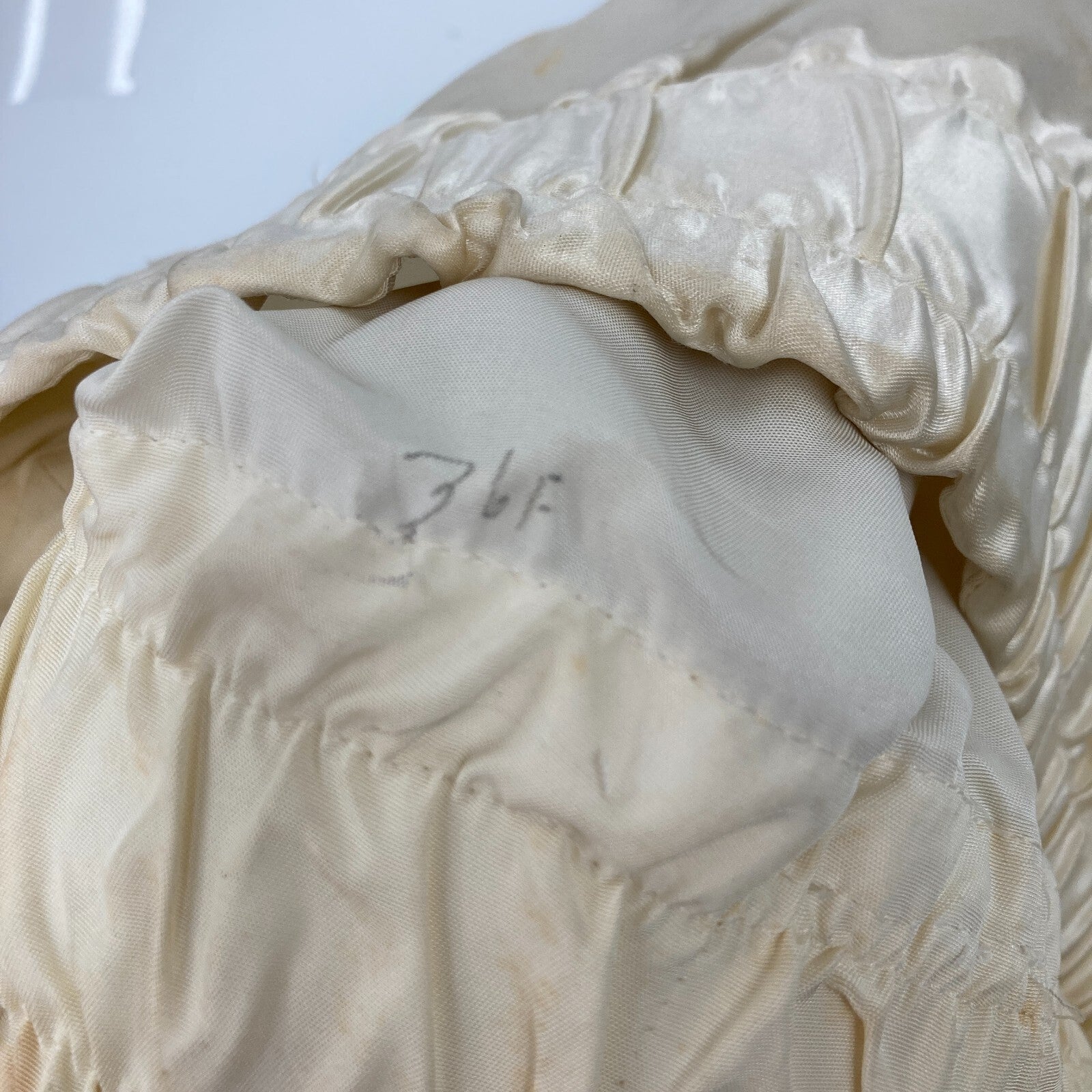 I owned these at one time. First ,I have been collecting Cassius Clay / Muhammad Ali items for over 45 years. Here is some of the history that I know. Several years back Iconic Auction sold them. They never listed them as worn by Ali. I bought them off the winner here on Ebay as signed by Ali. After I received them ,I studied them closely . I noticed of course that the front makers label was missing. Looking inside I saw the 36 F and 36B which is odd. My opinion was the 36 represented the waist size and F is for front ,Bis for Back. I believe this was done due to the missing label which will always mean the front of the trunks. The markings inside IMO shows the wearer to put in on properly. Next is Ali inside. It is not your standard Wali Muhammad "Ali" marking but it is Ali. When I sold these to another buyer, I also included a picture of Ali actually wearing them. What happened to that picture is a question.